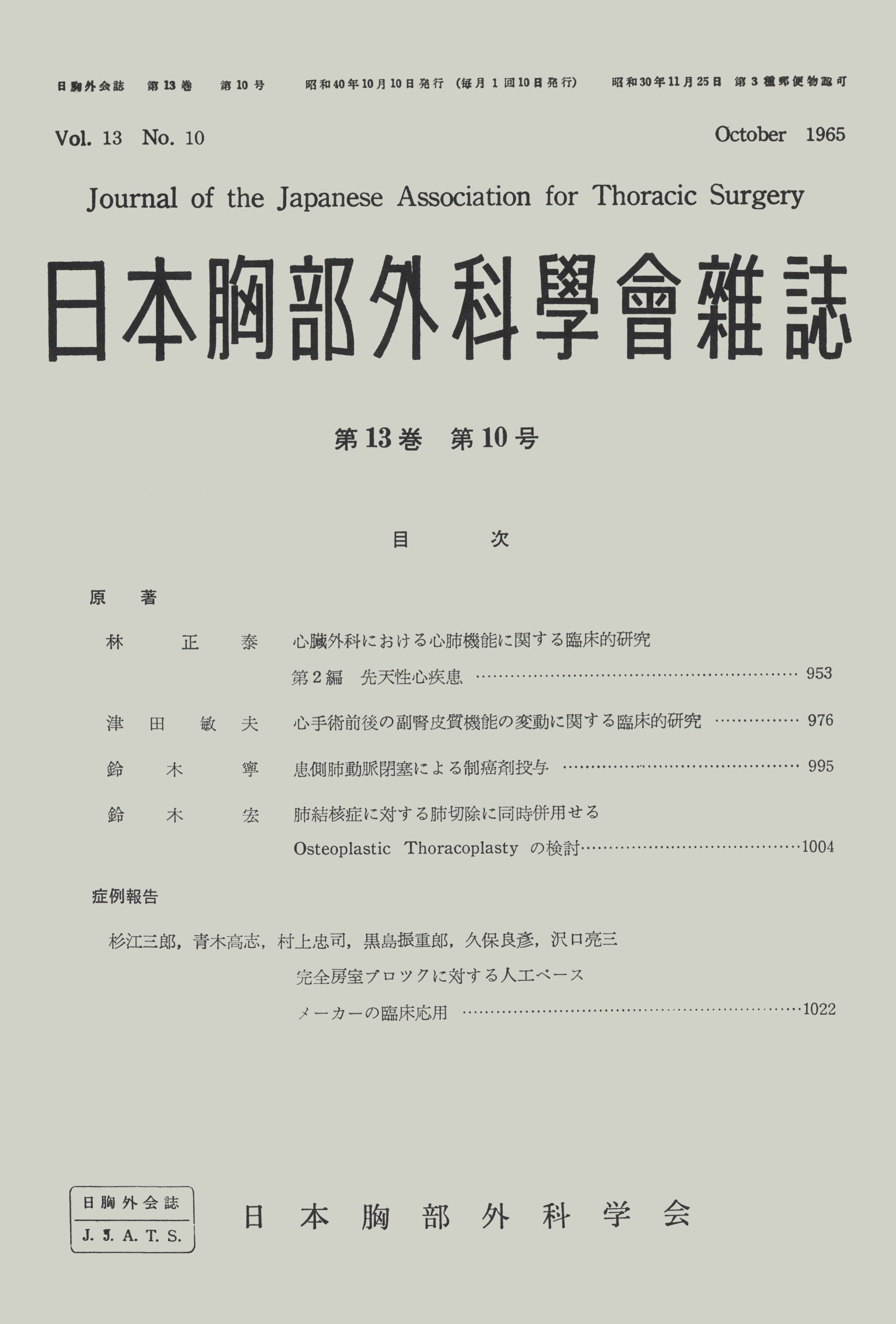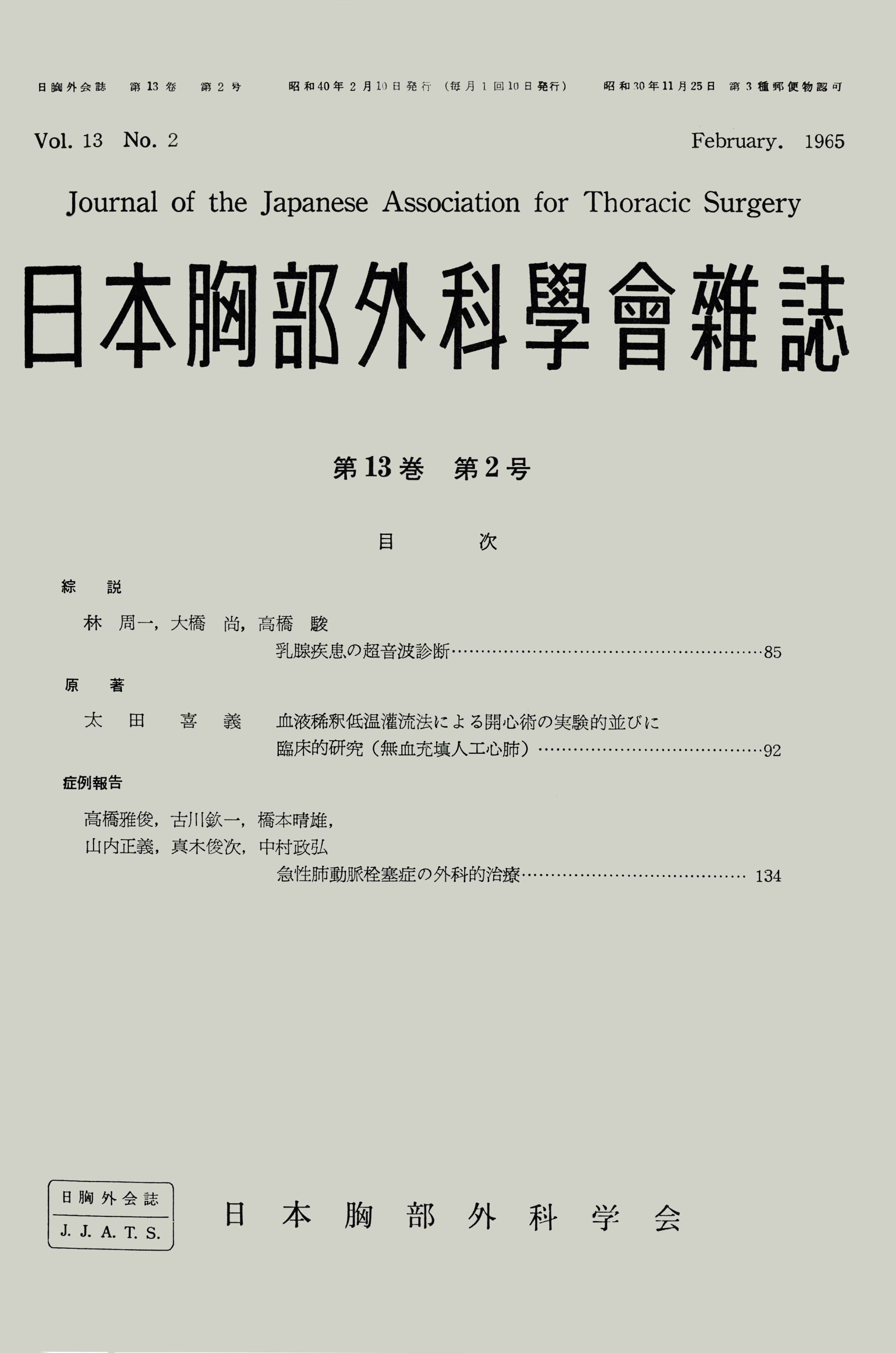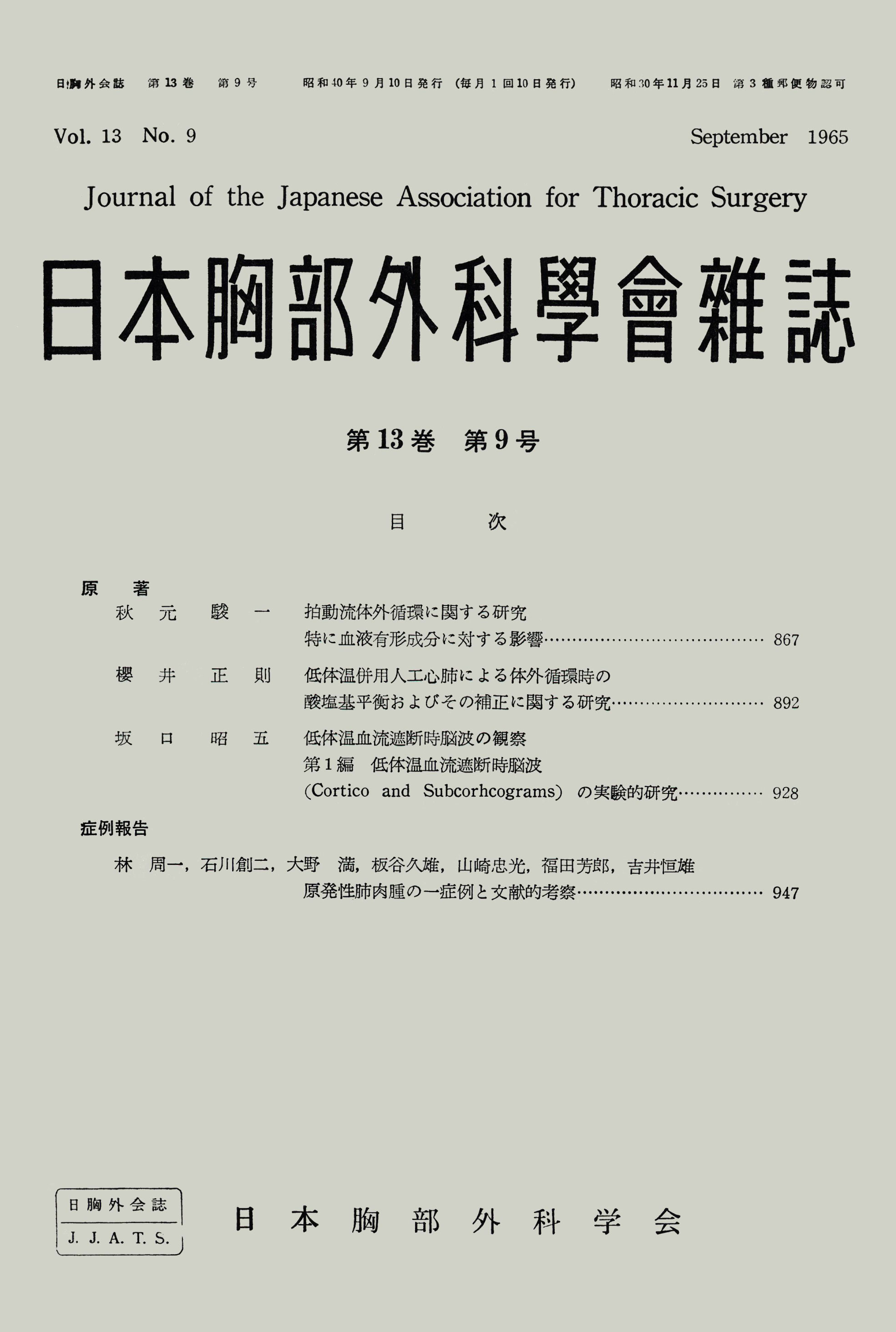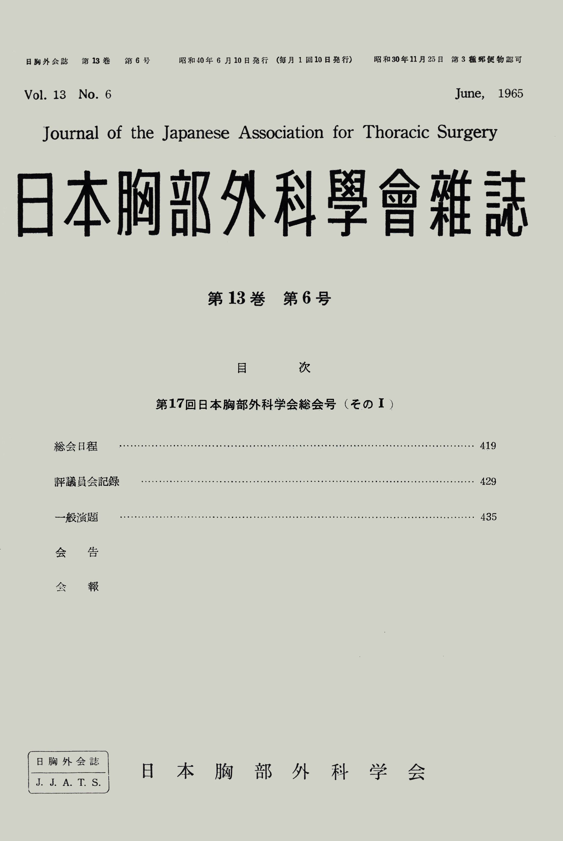 > 日本胸部外科学会雑誌 (1965)