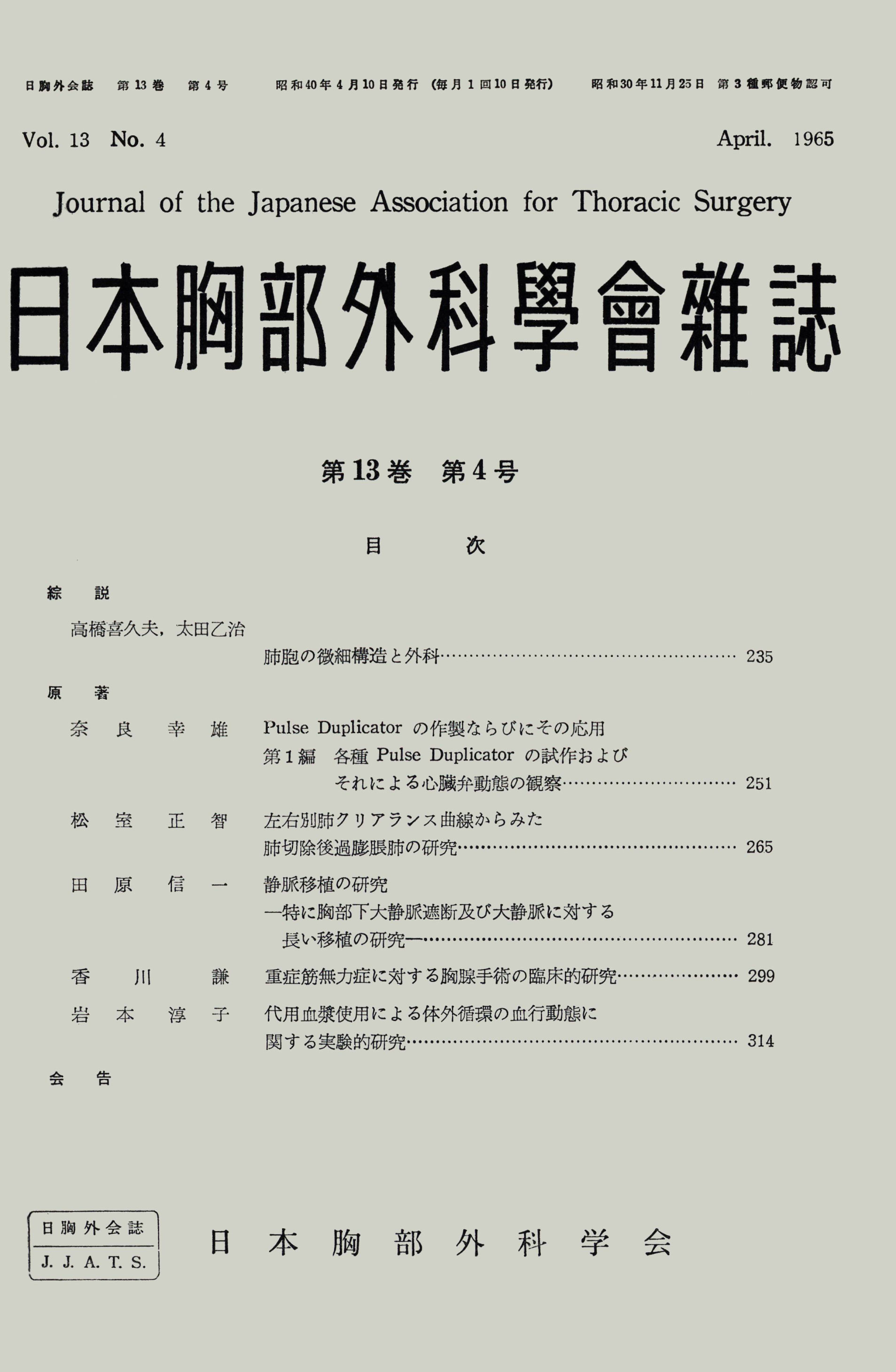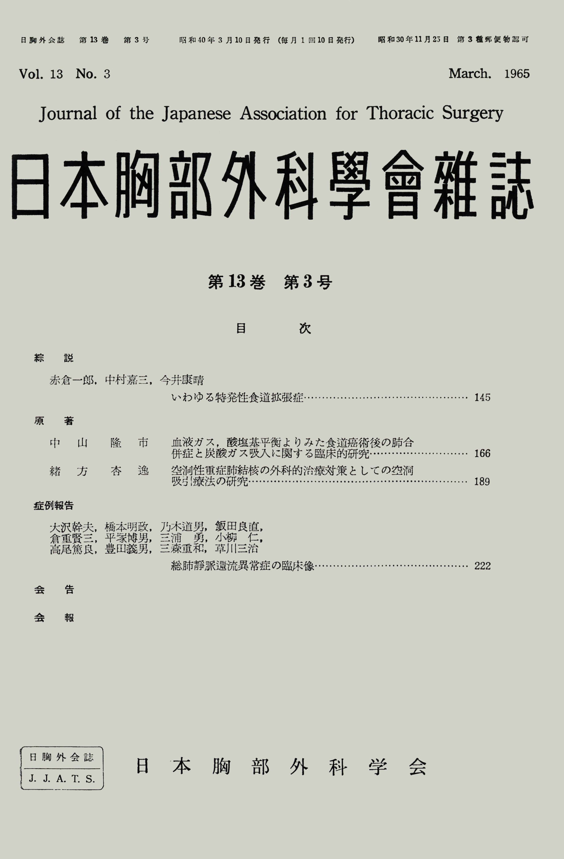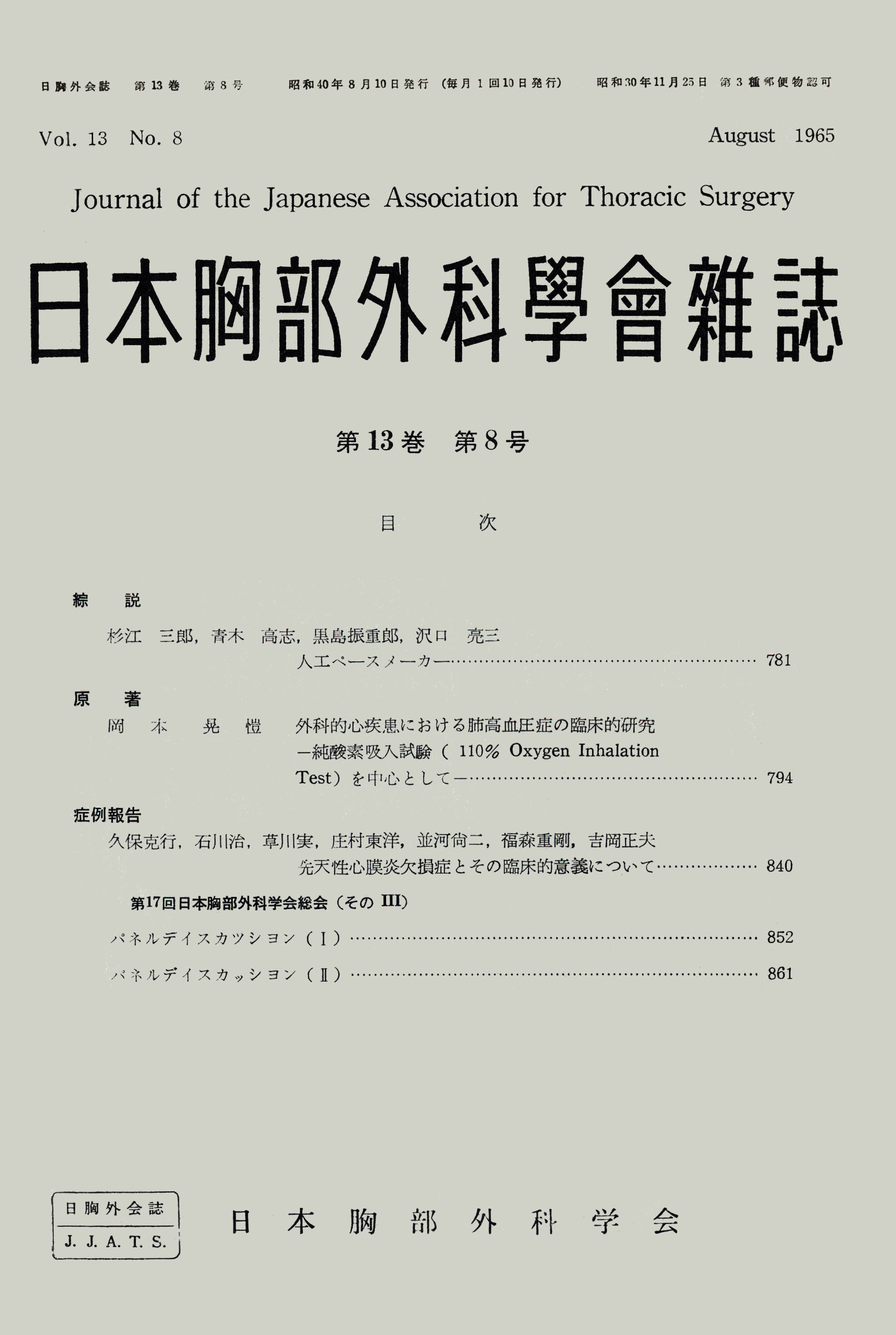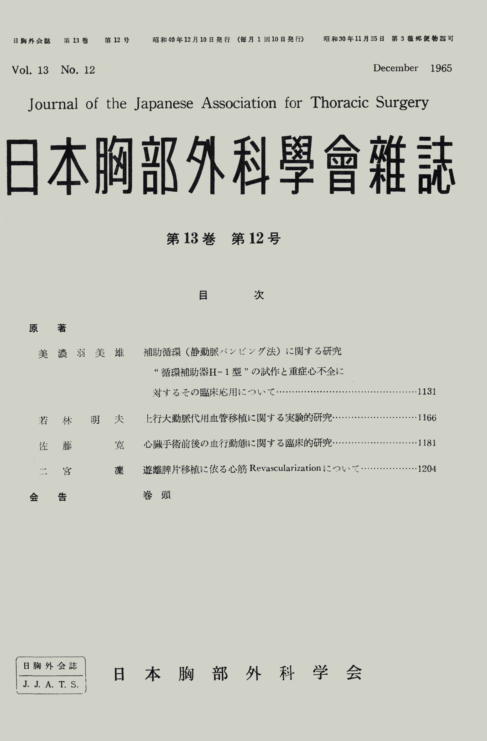 > 日本胸部外科学会雑誌 (1965)