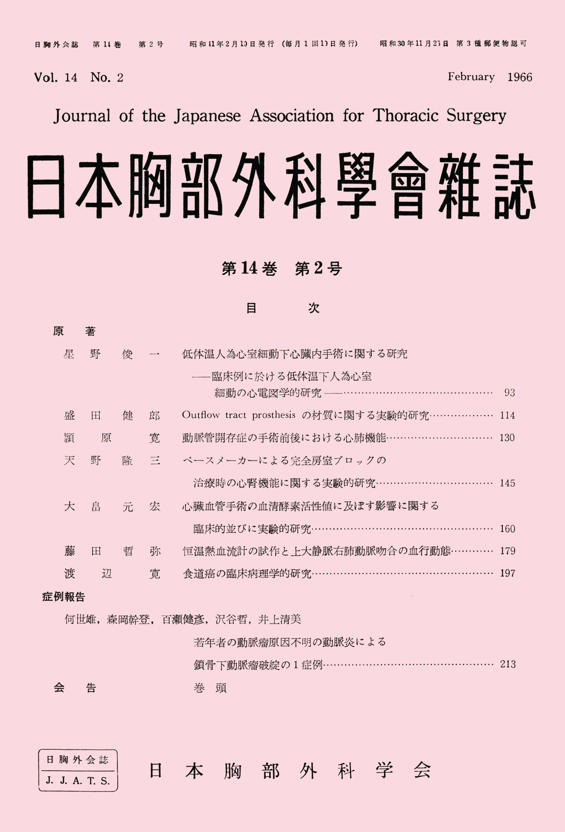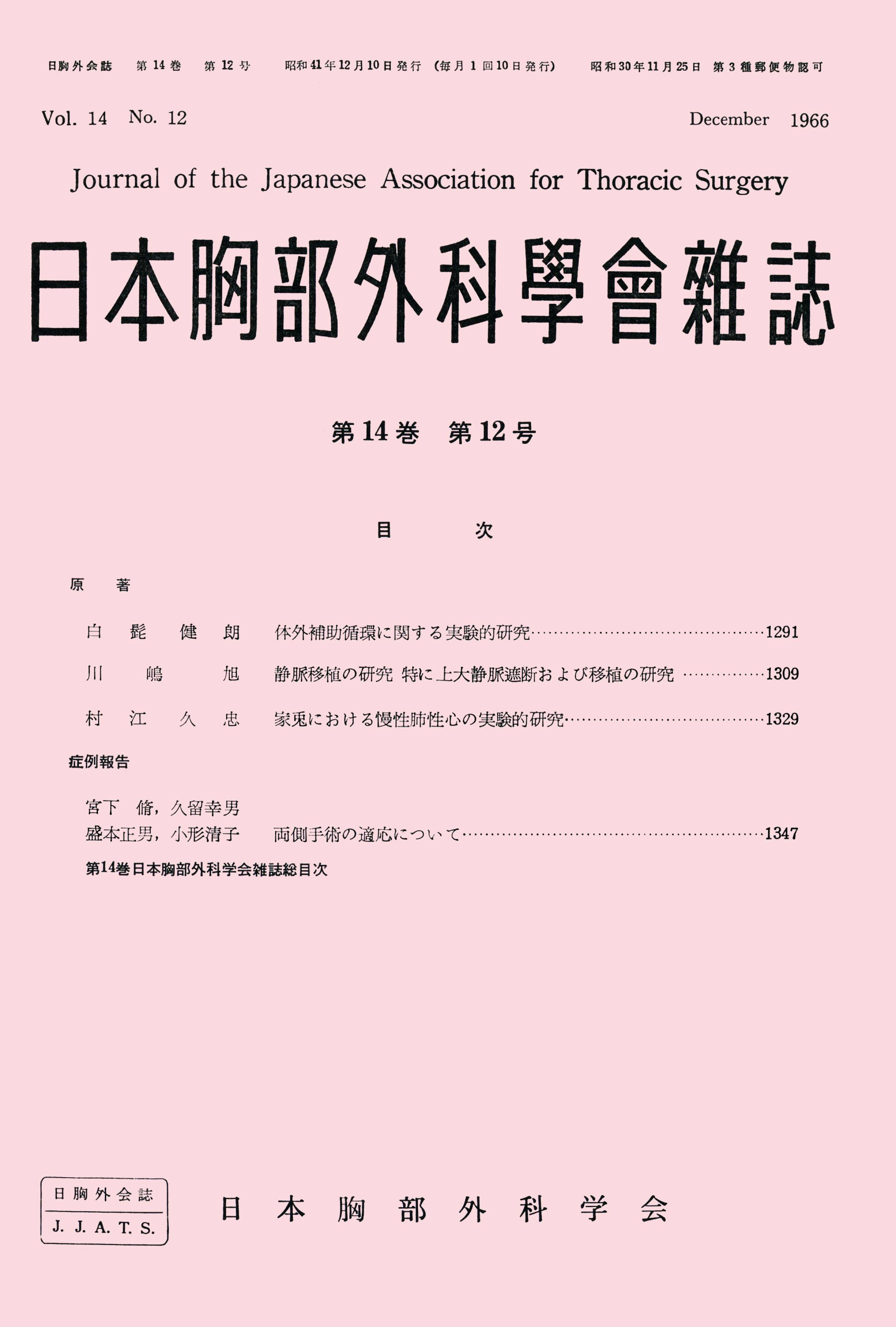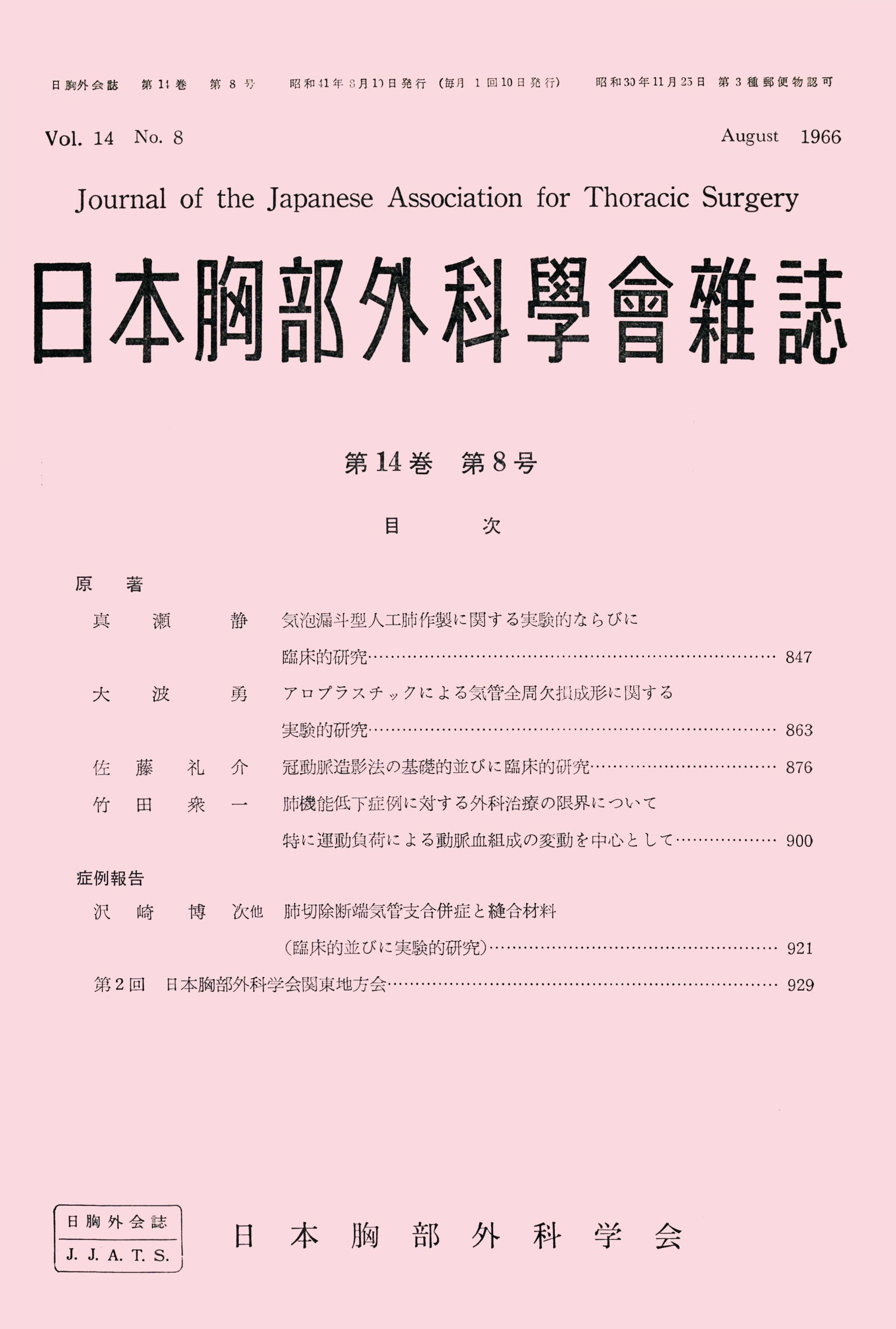 > 日本胸部外科学会雑誌 (1966)