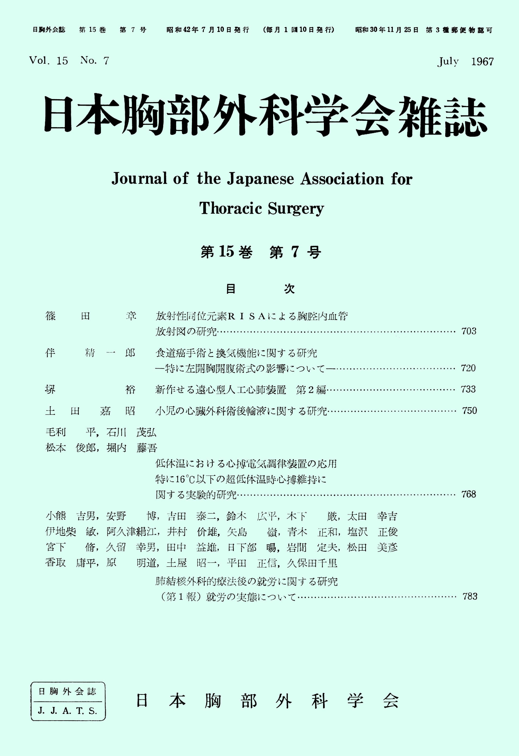 > 日本胸部外科学会雑誌 (1967)