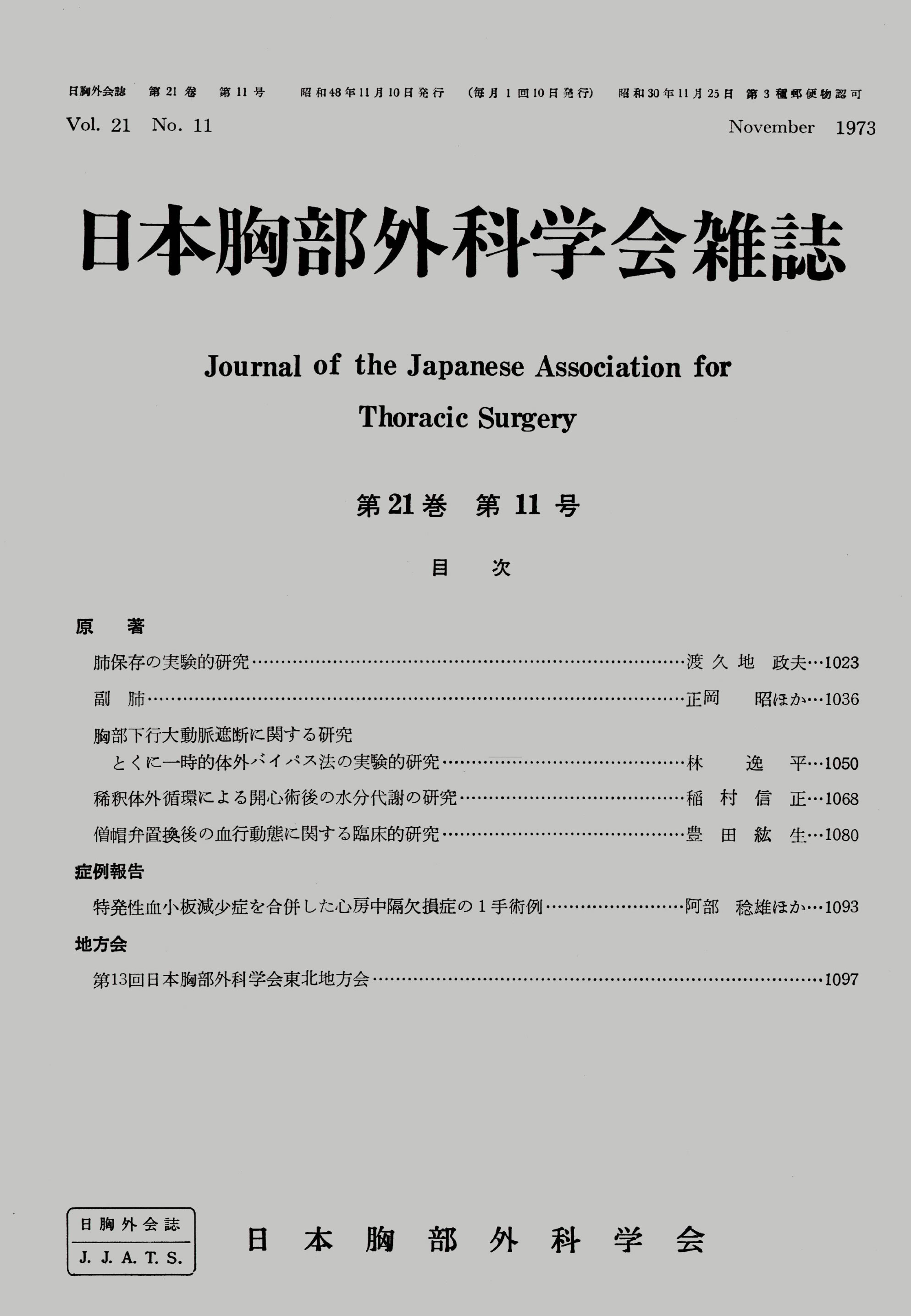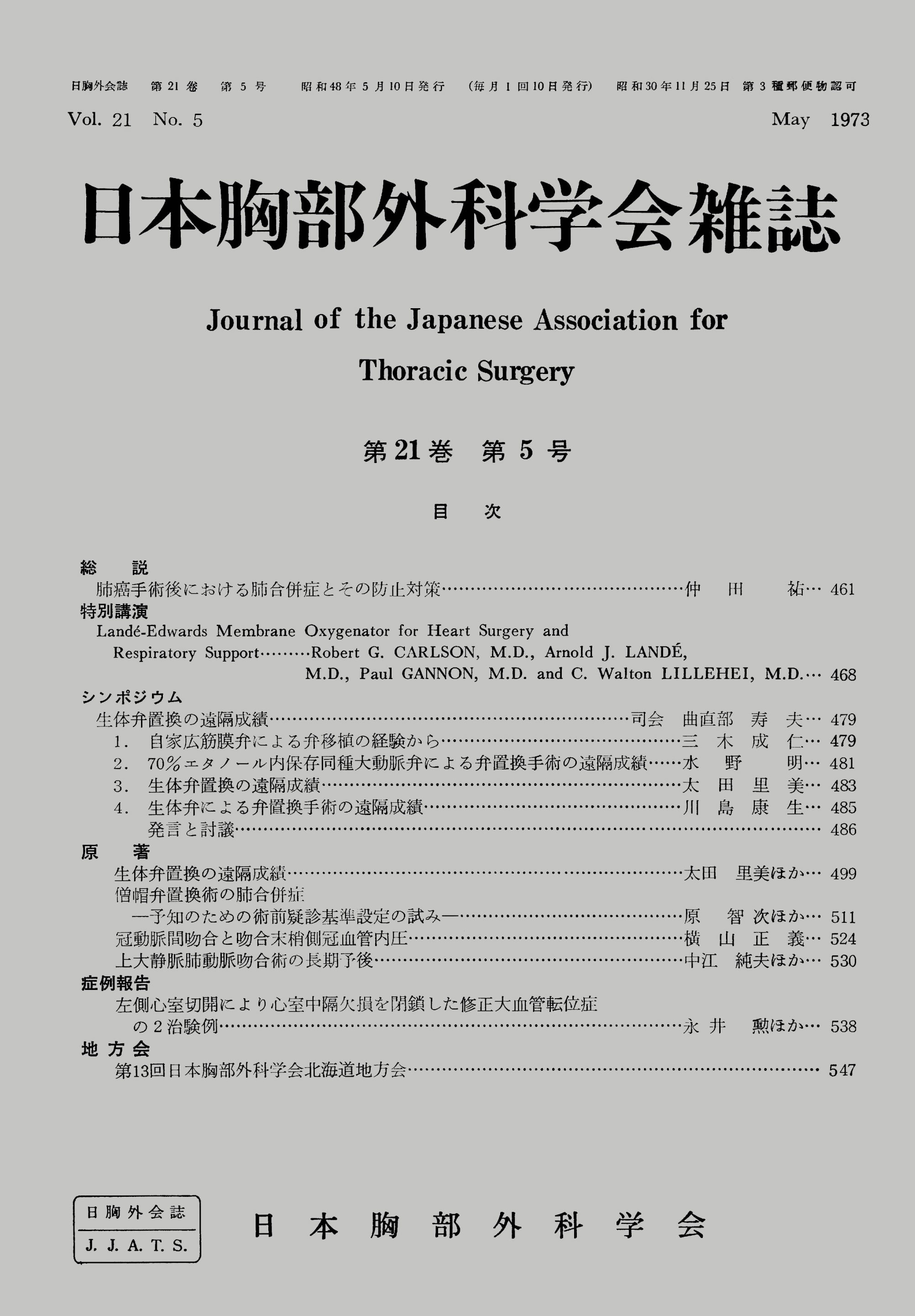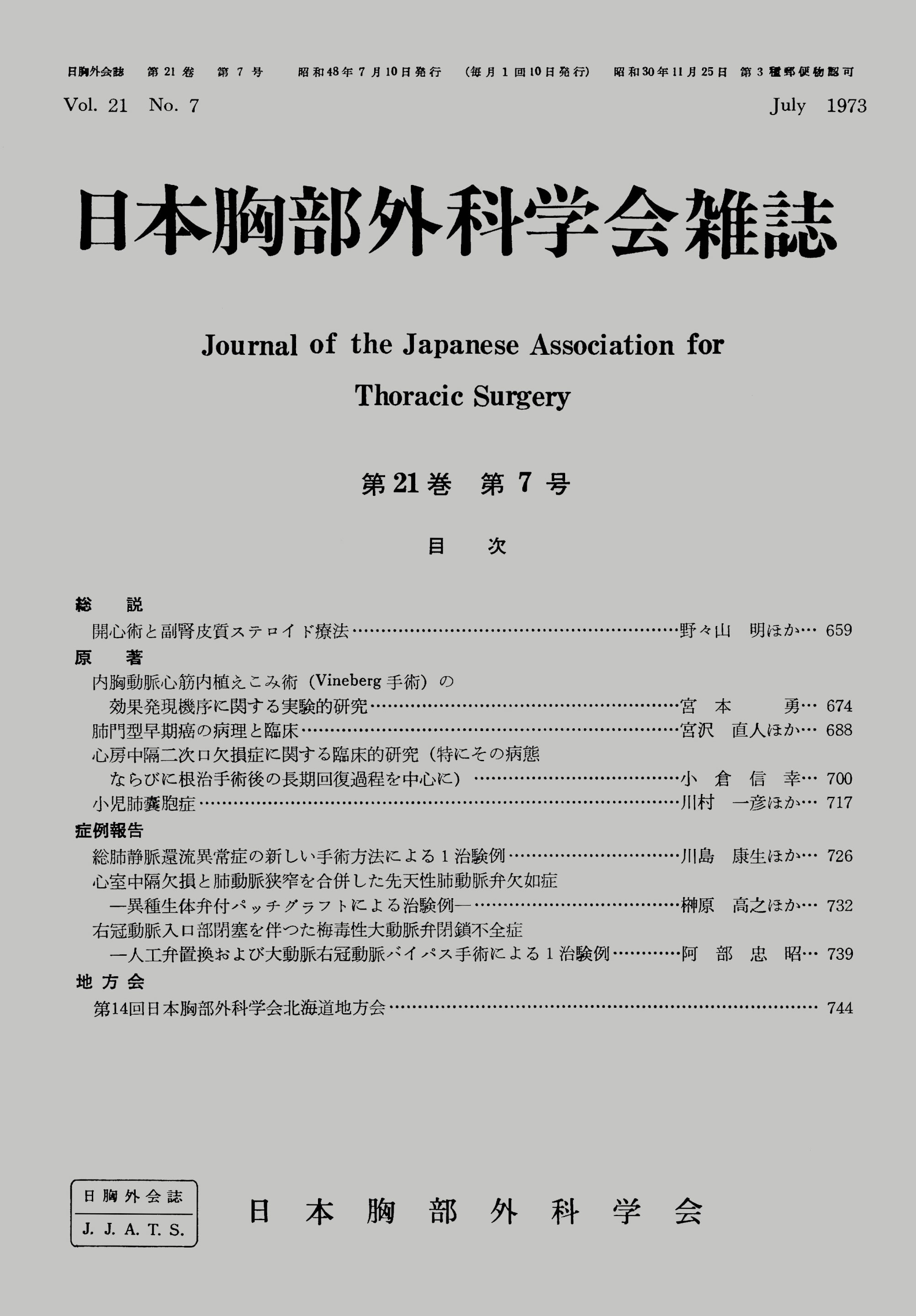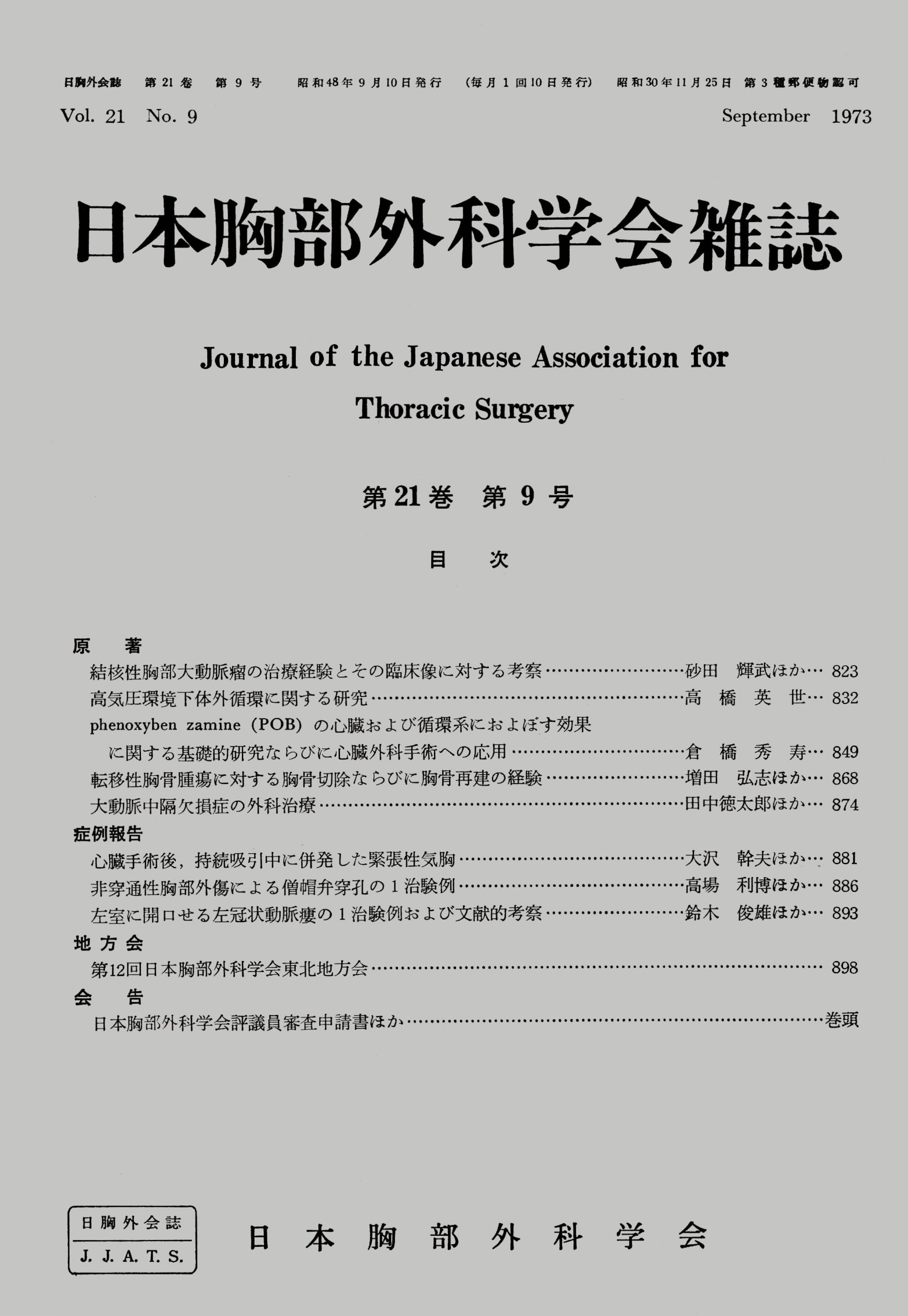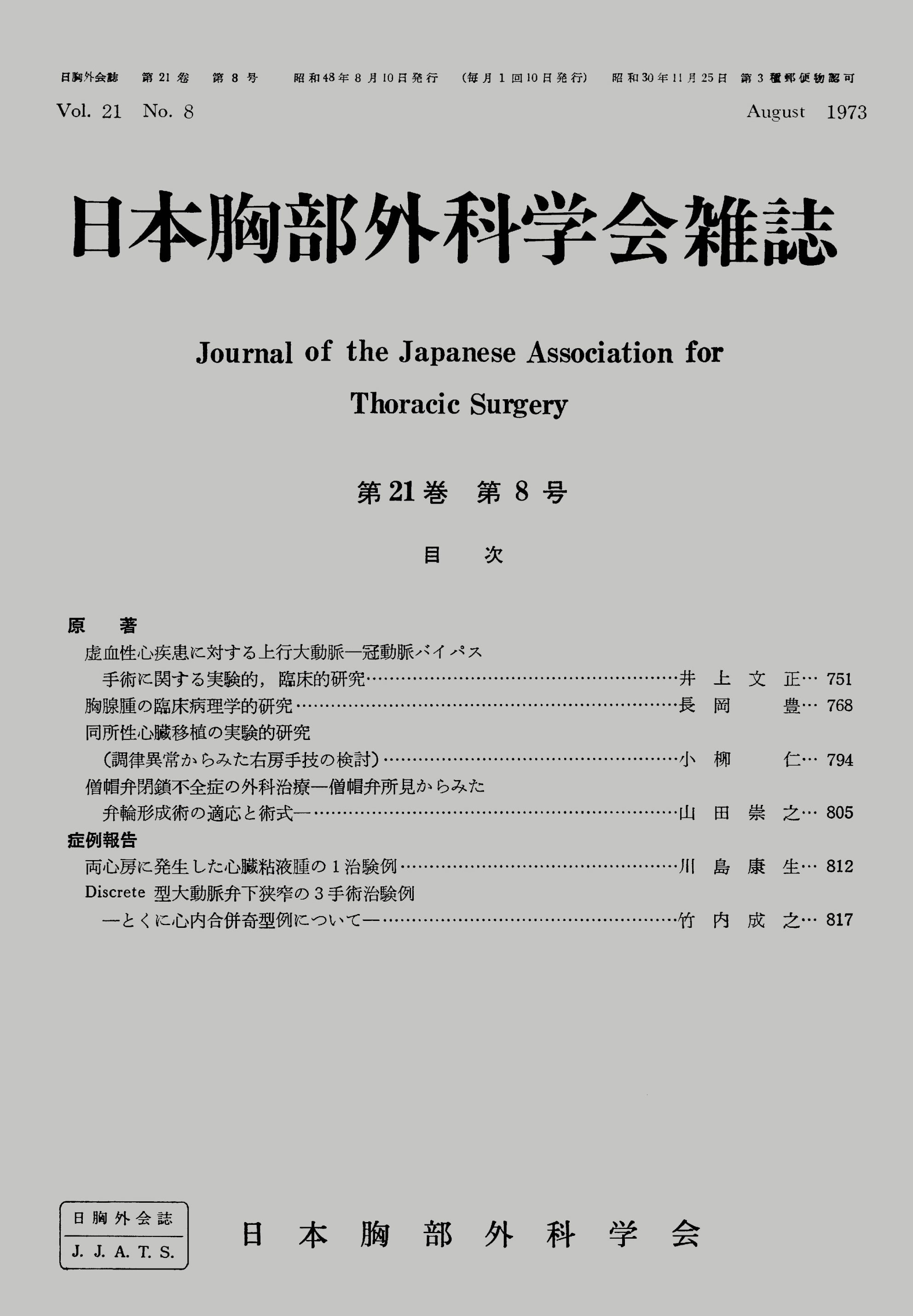 > 日本胸部外科学会雑誌 (1973)