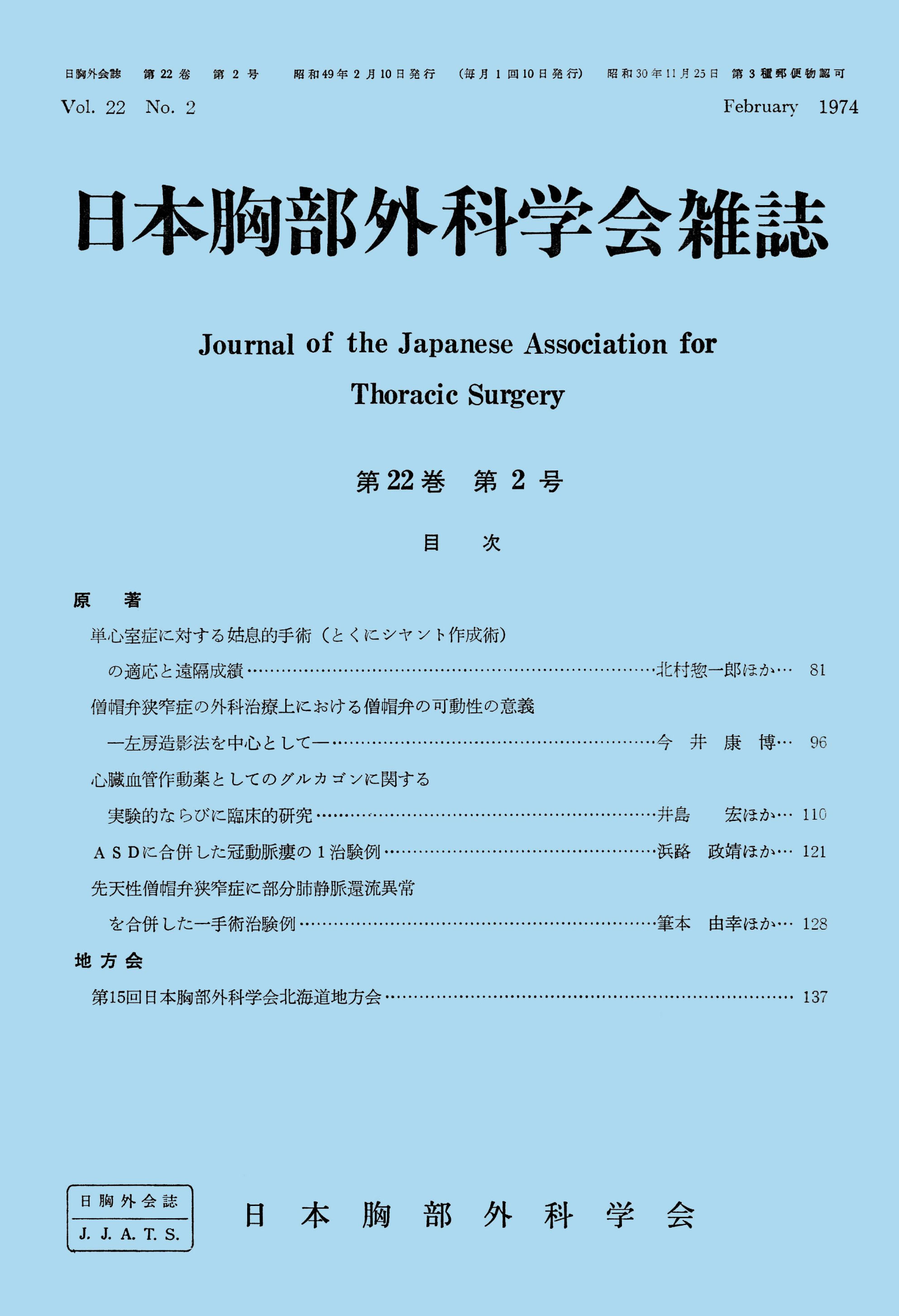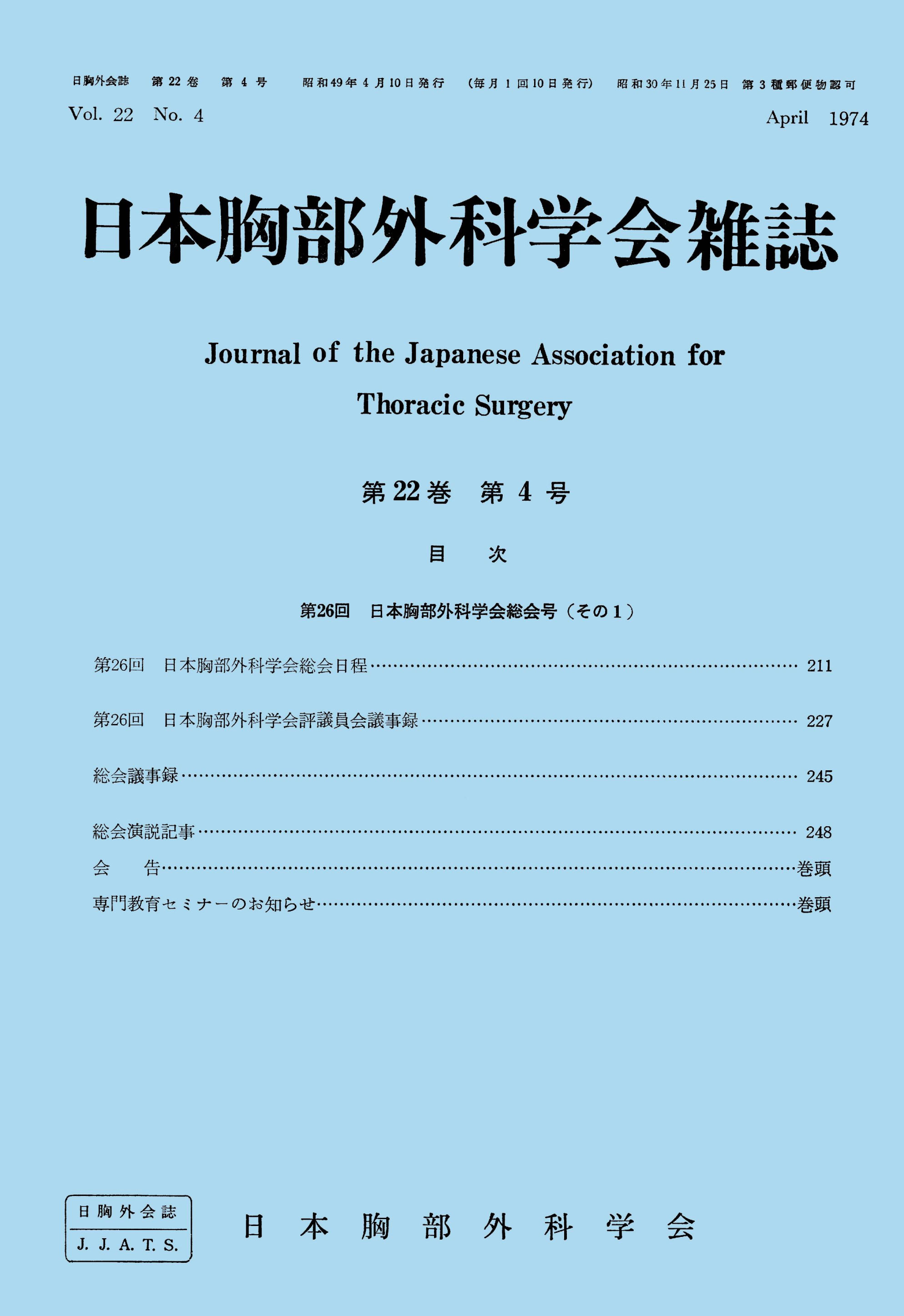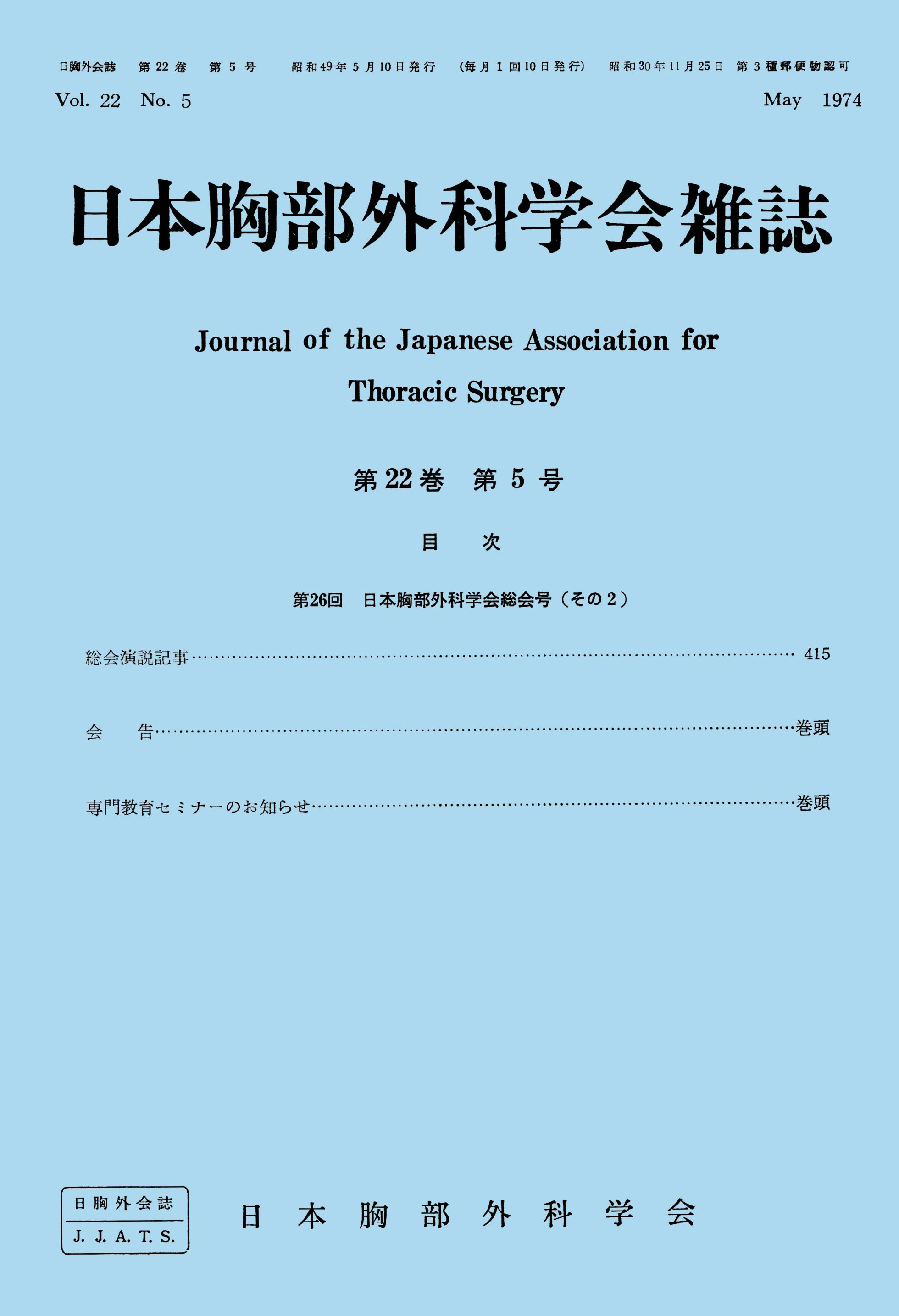 > 日本胸部外科学会雑誌 (1974)