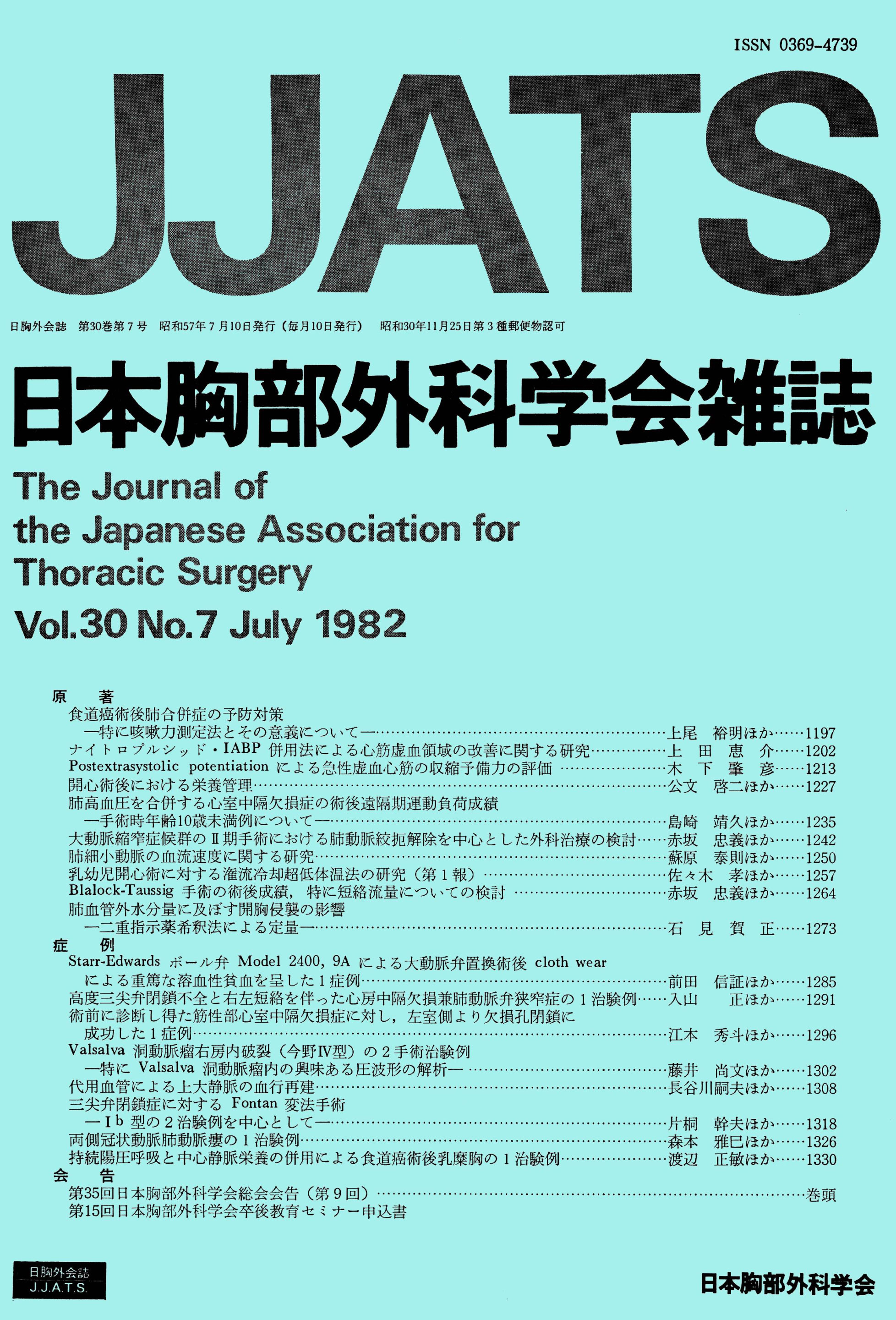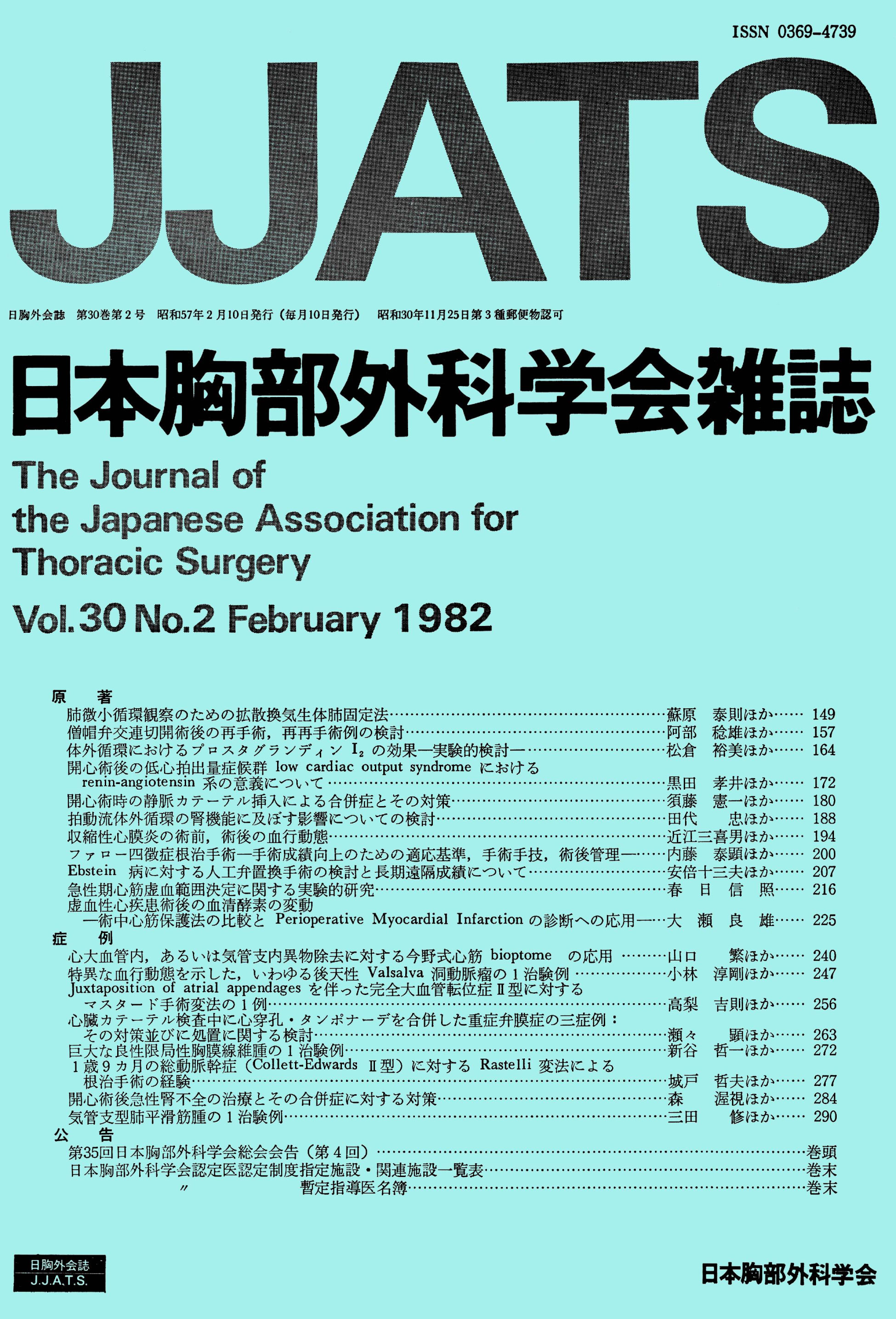 > 日本胸部外科学会雑誌 (1982)