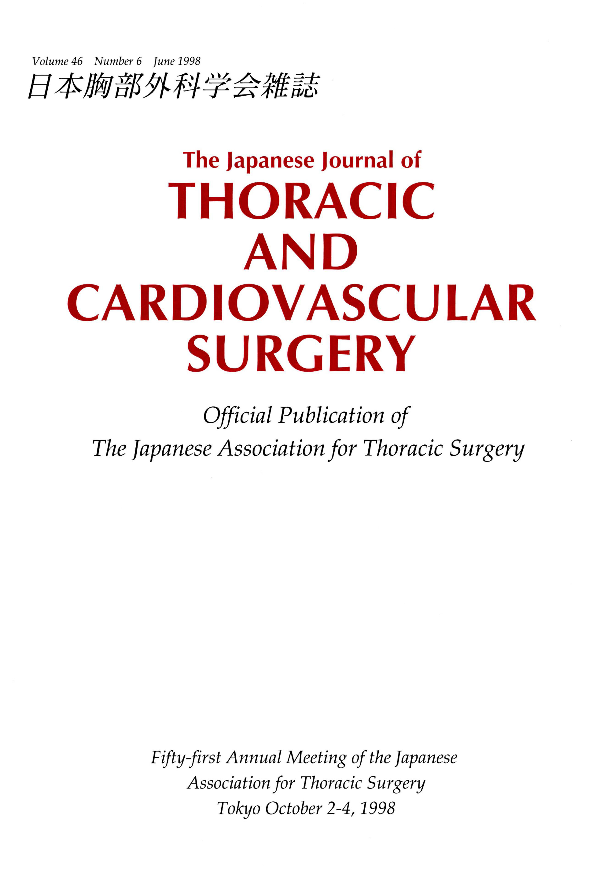 > The Japanese Journal Of Thoracic And Cardiovascular Surgery (1998)
