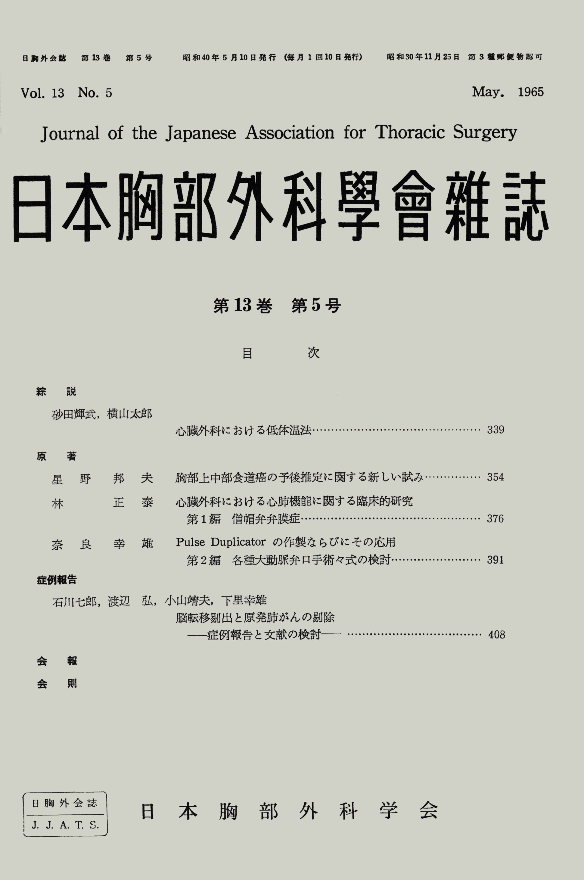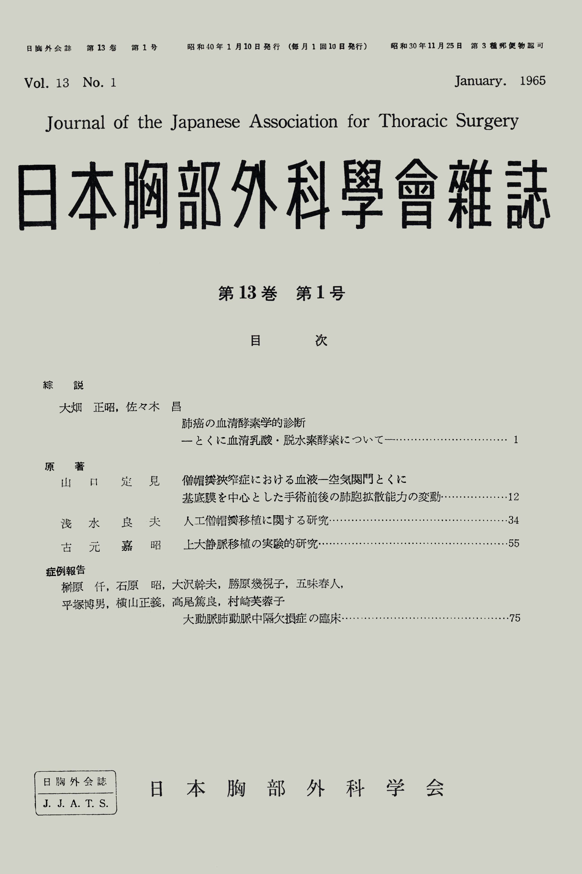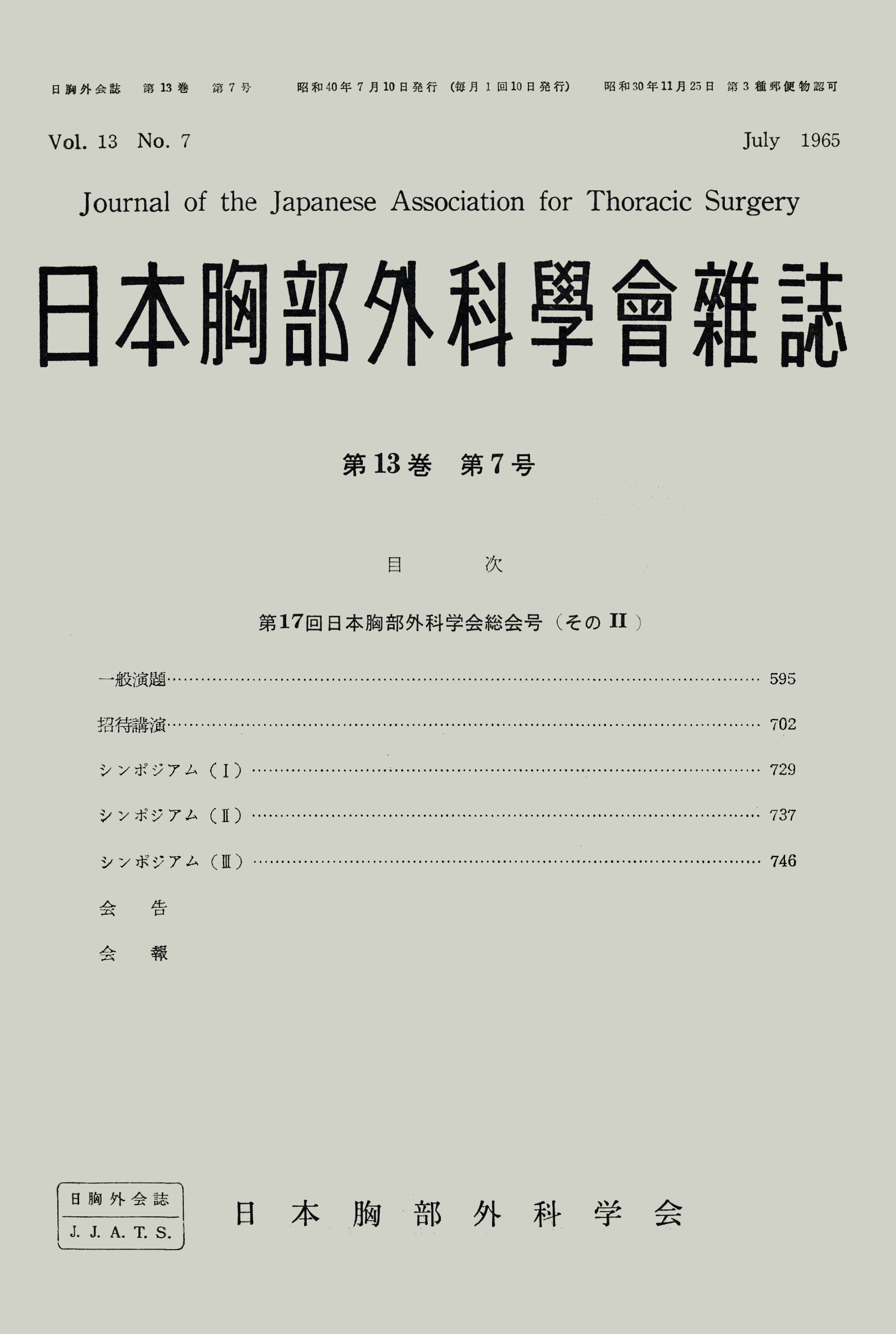 > 日本胸部外科学会雑誌 (1965)