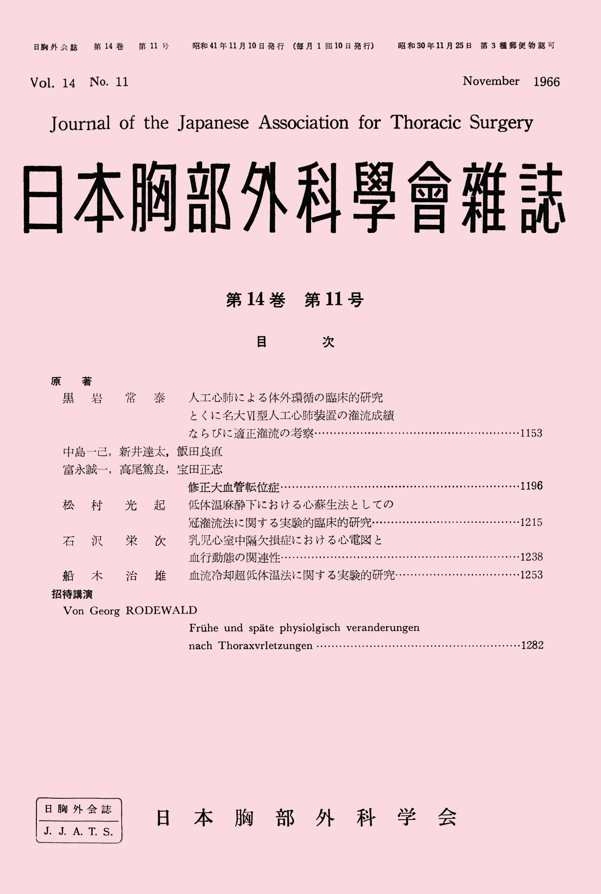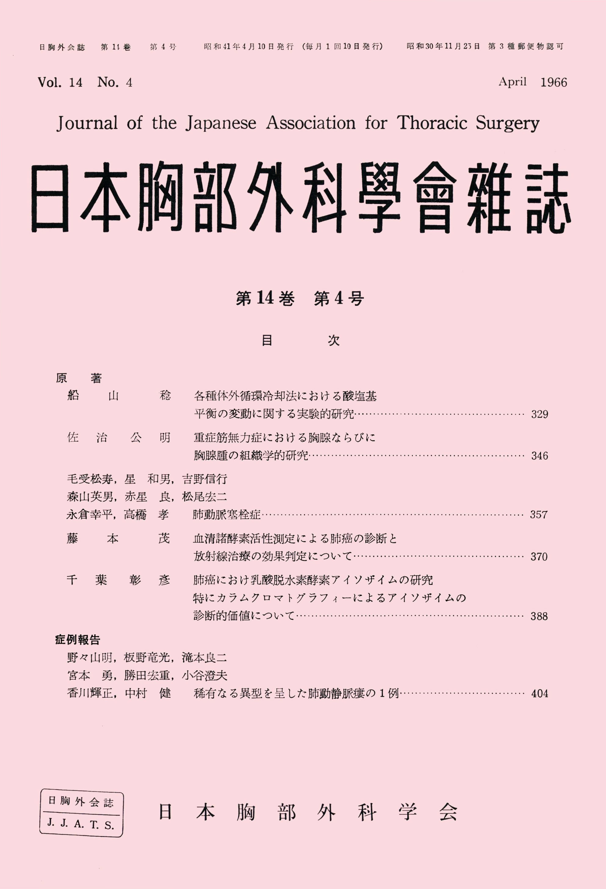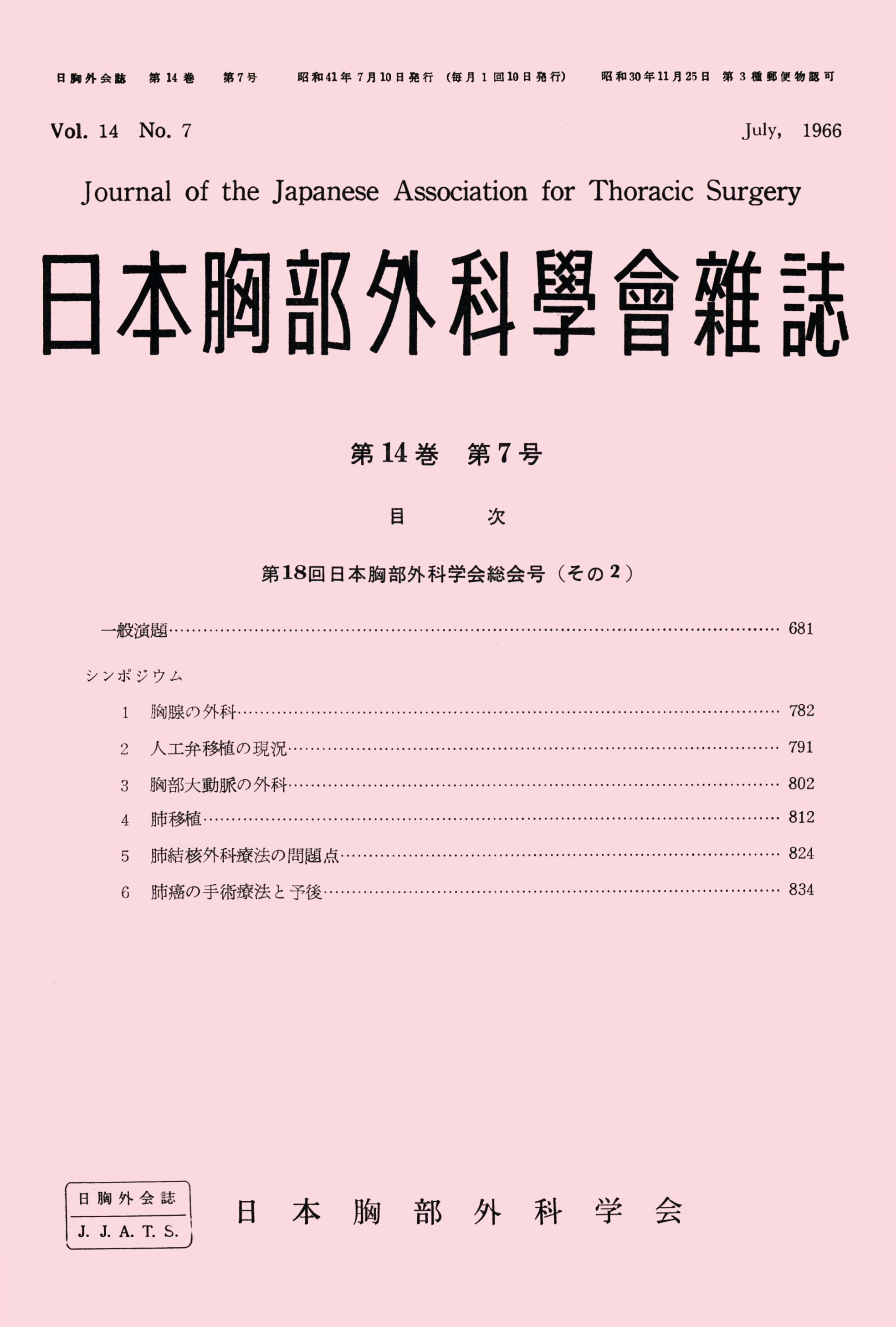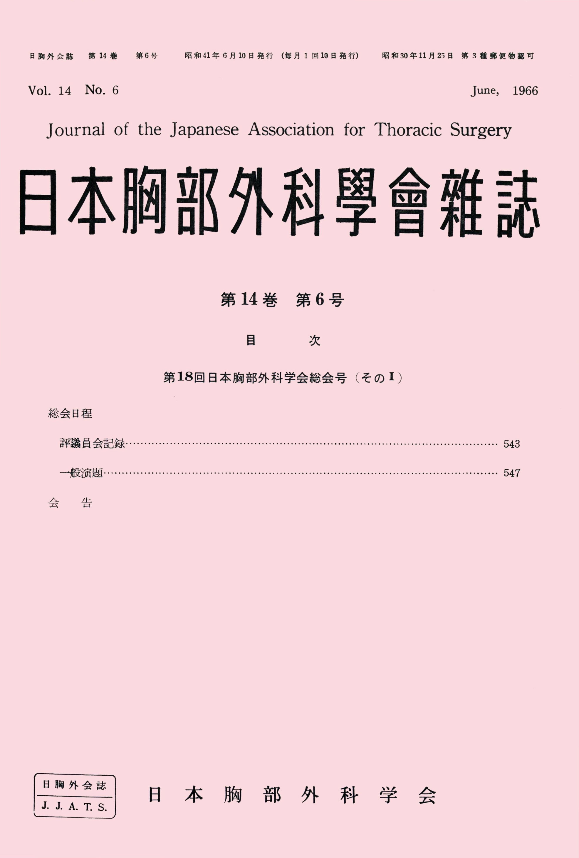 > 日本胸部外科学会雑誌 (1966)