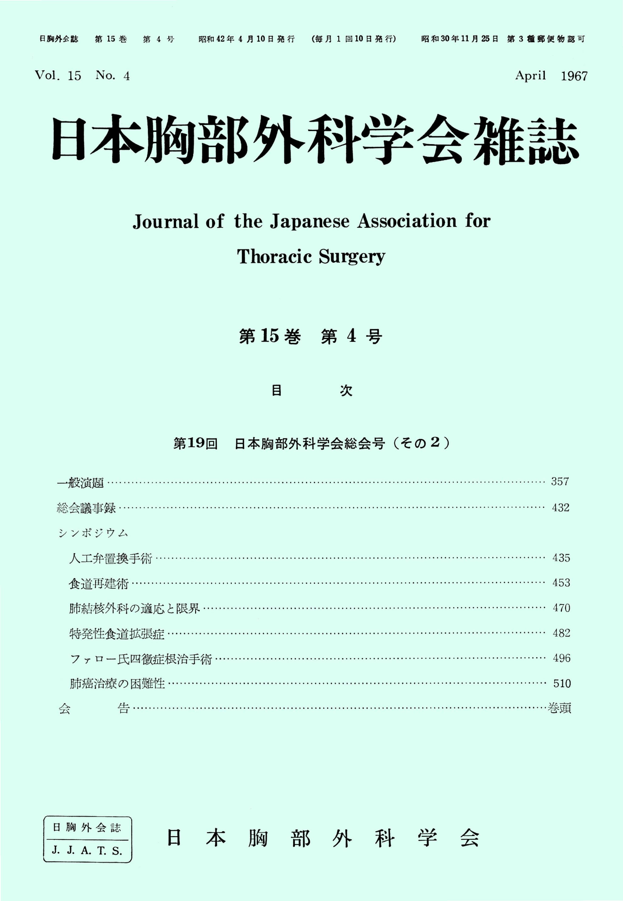 > 日本胸部外科学会雑誌 (1967)