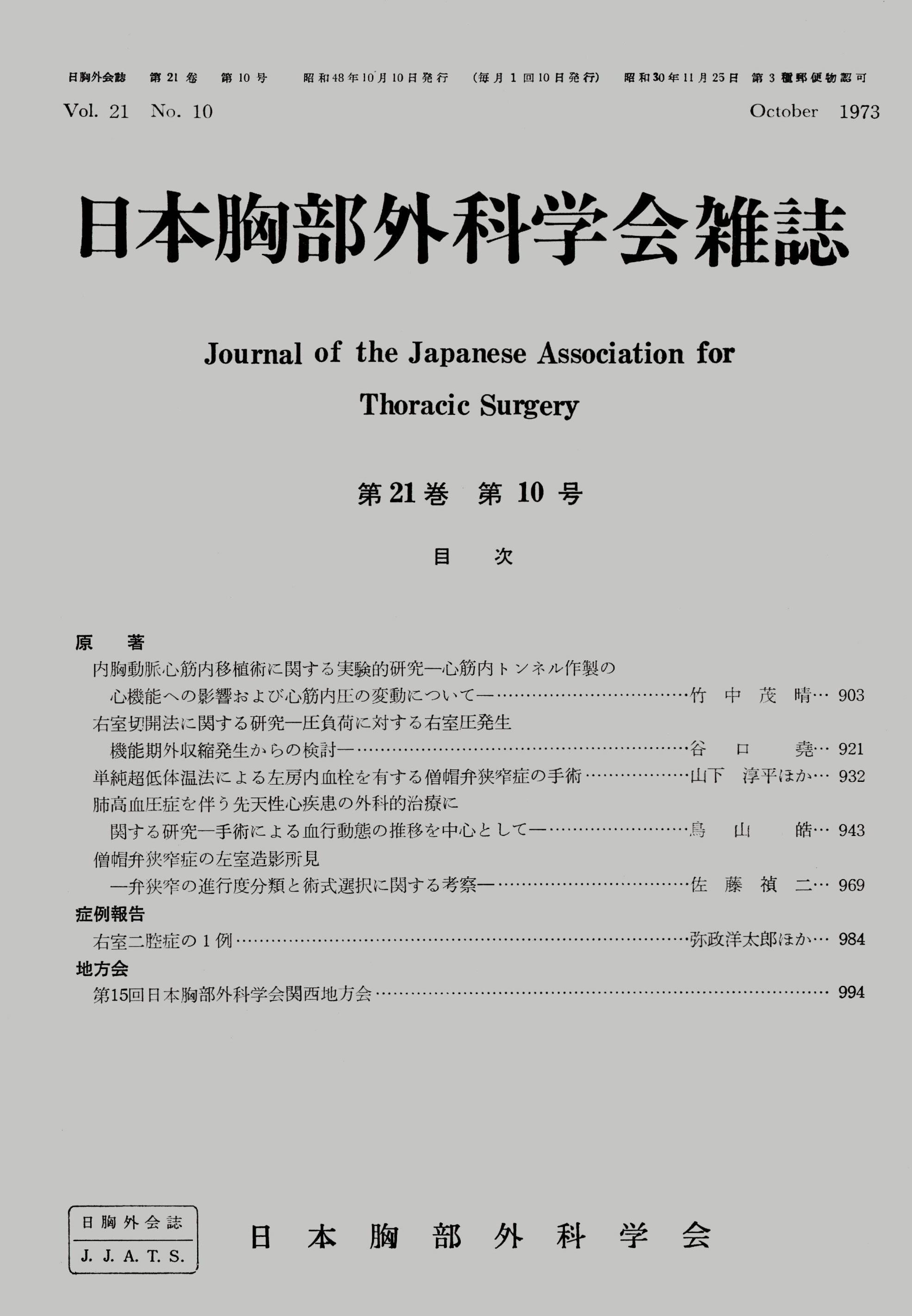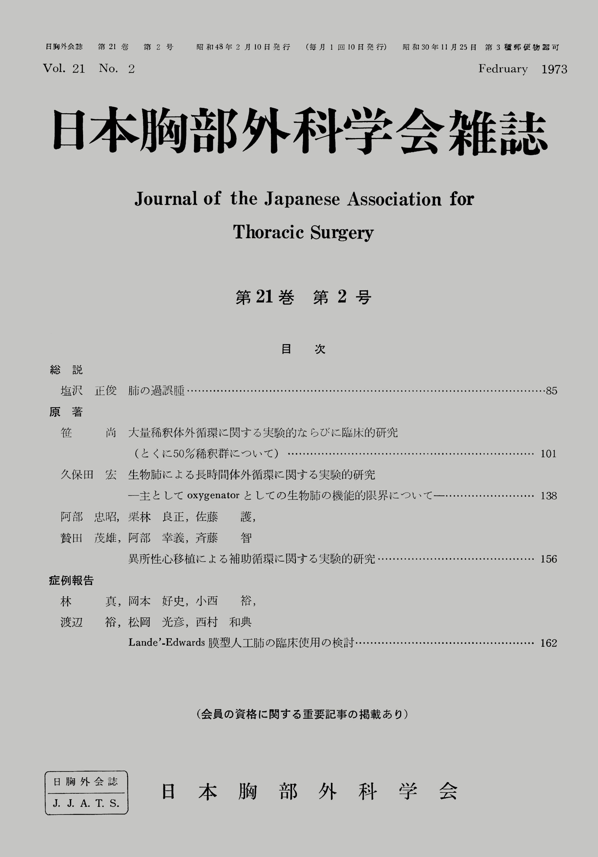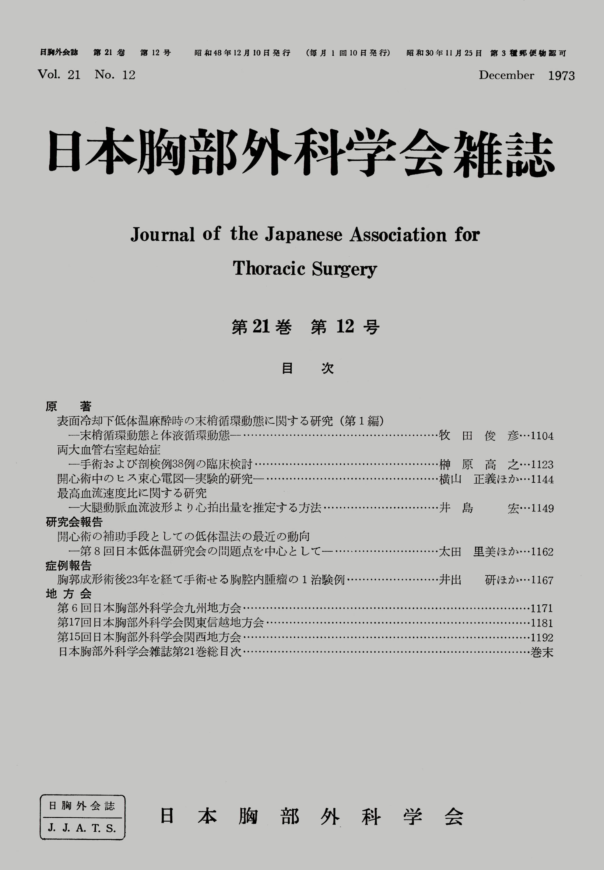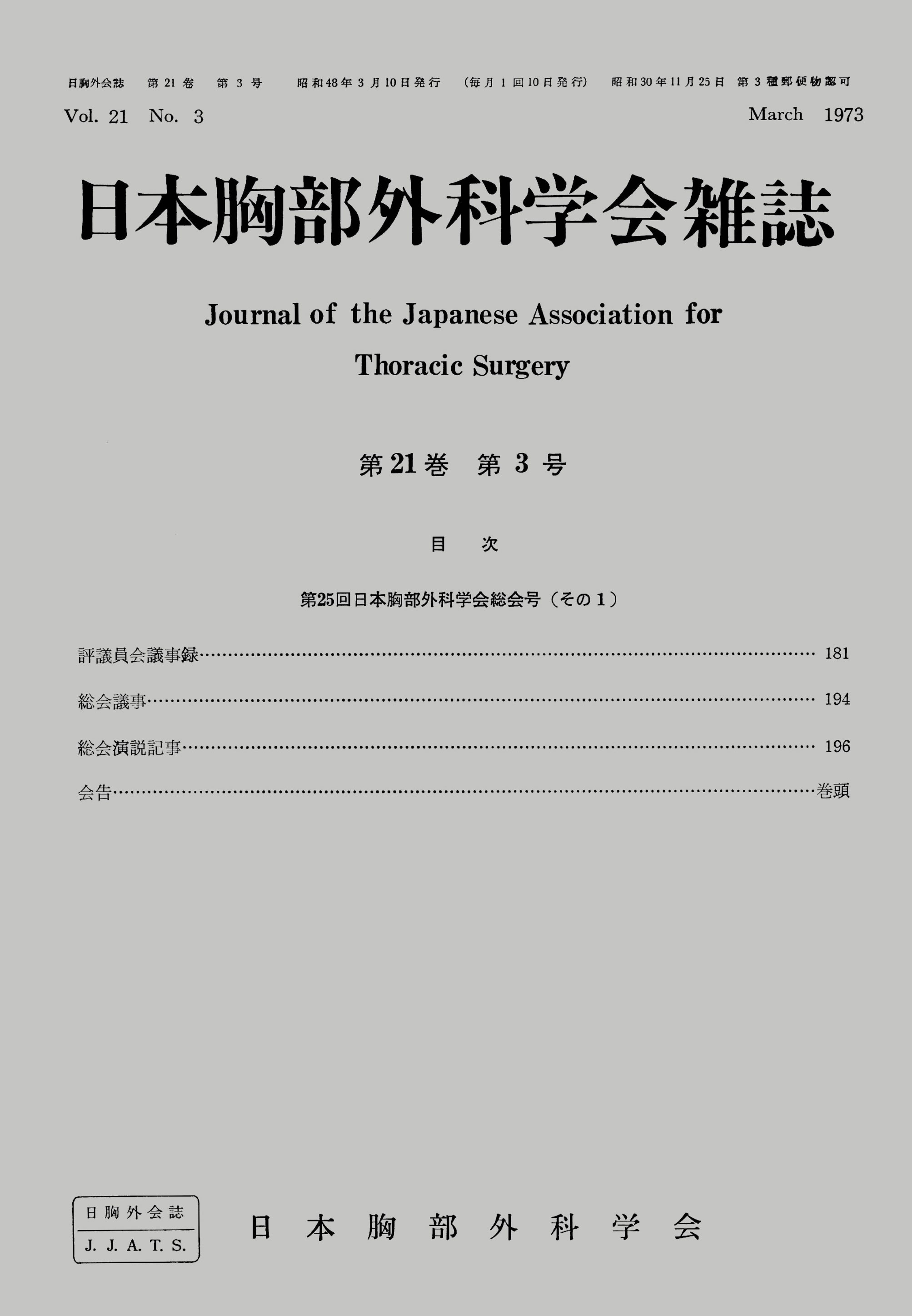 > 日本胸部外科学会雑誌 (1973)