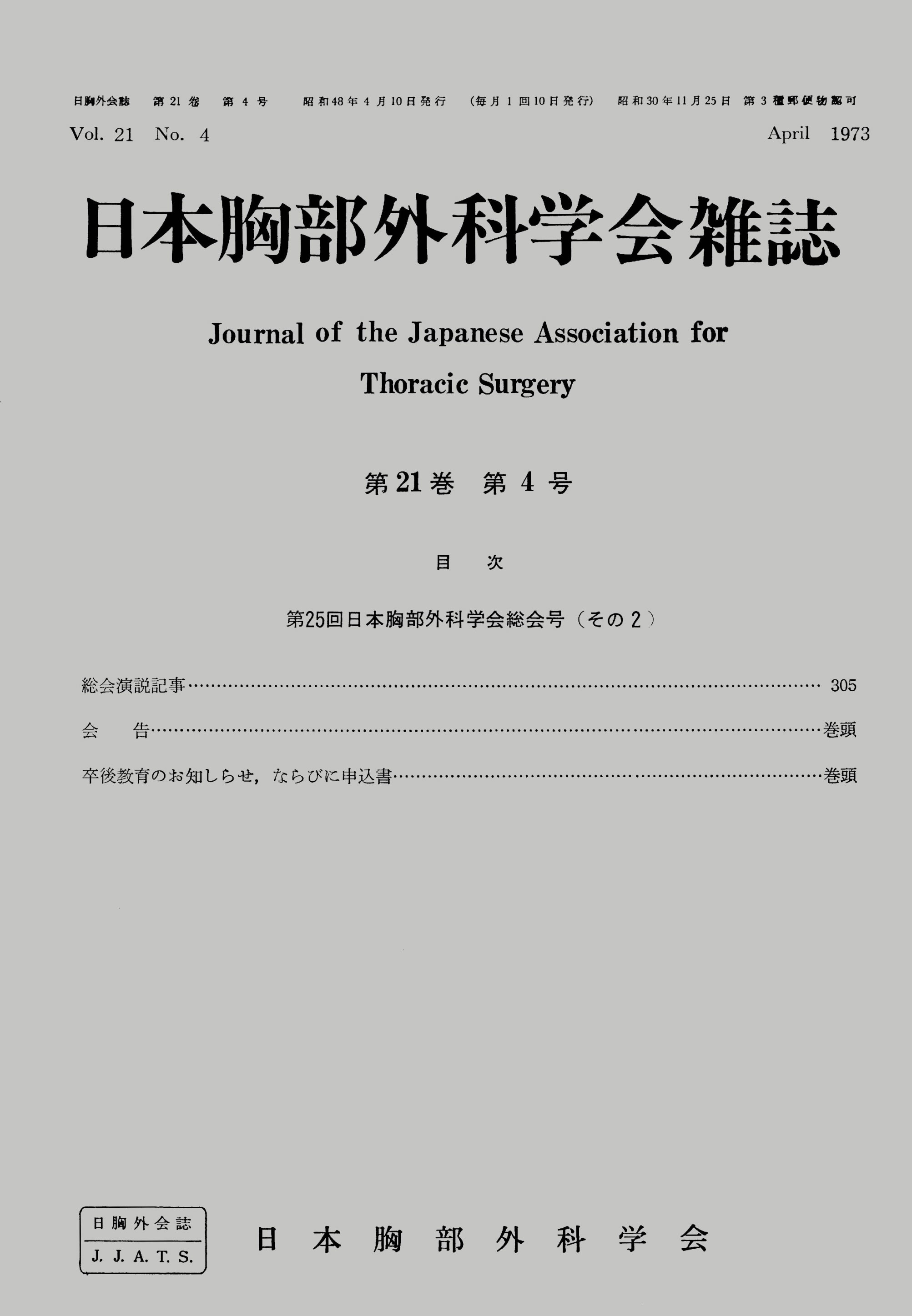 バックナンバー:日本胸部外科学会雑誌