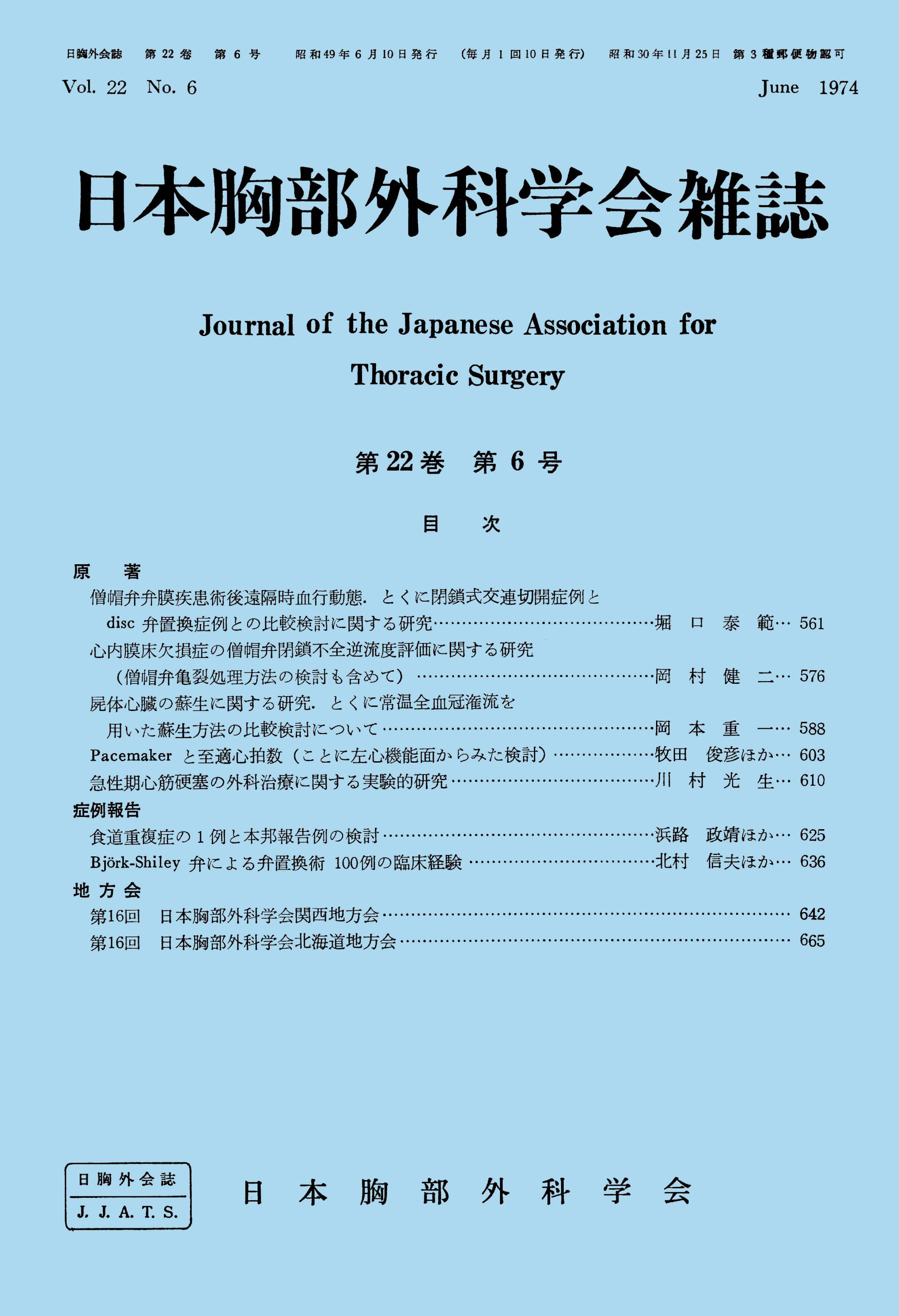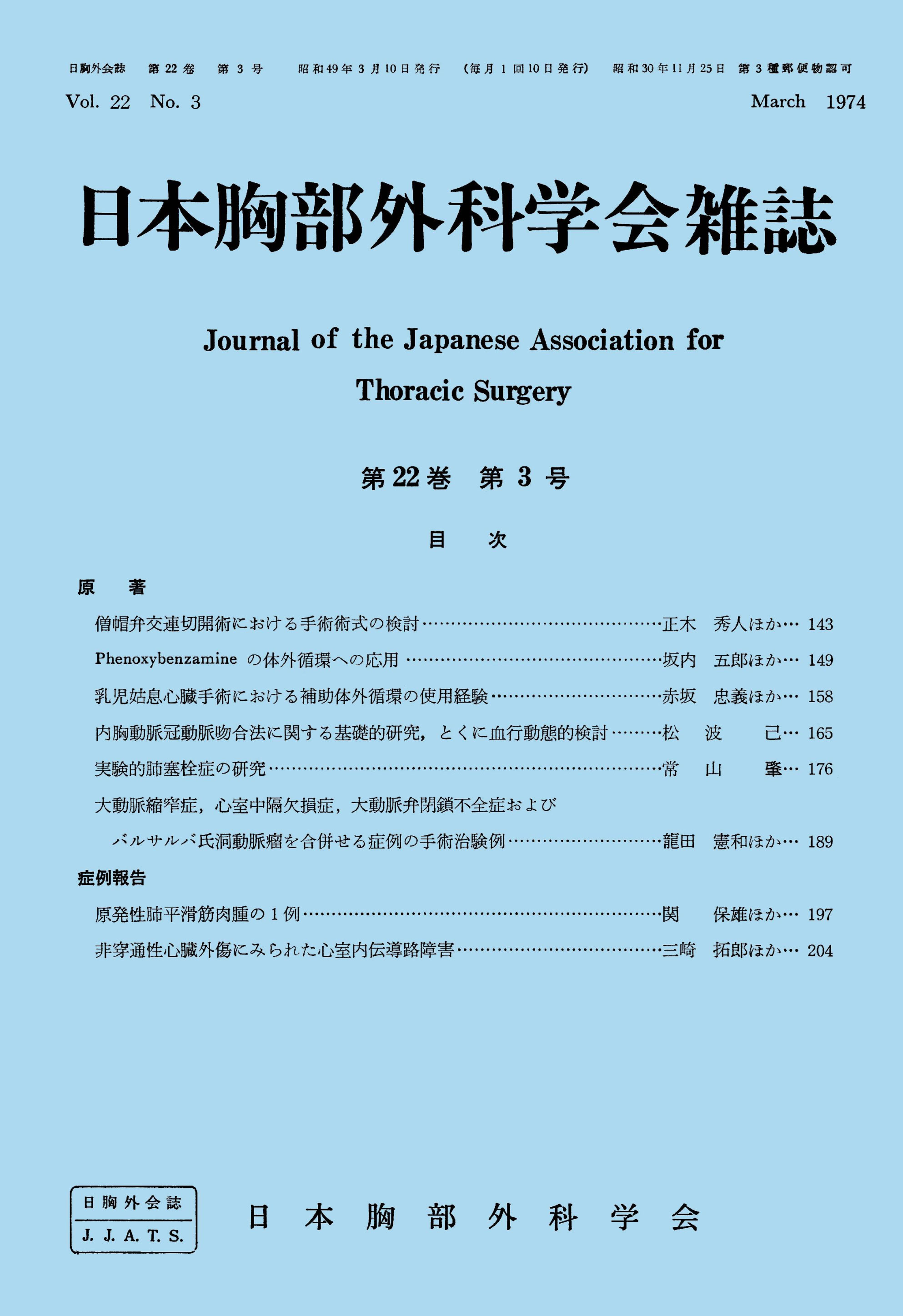> 日本胸部外科学会雑誌 (1974)