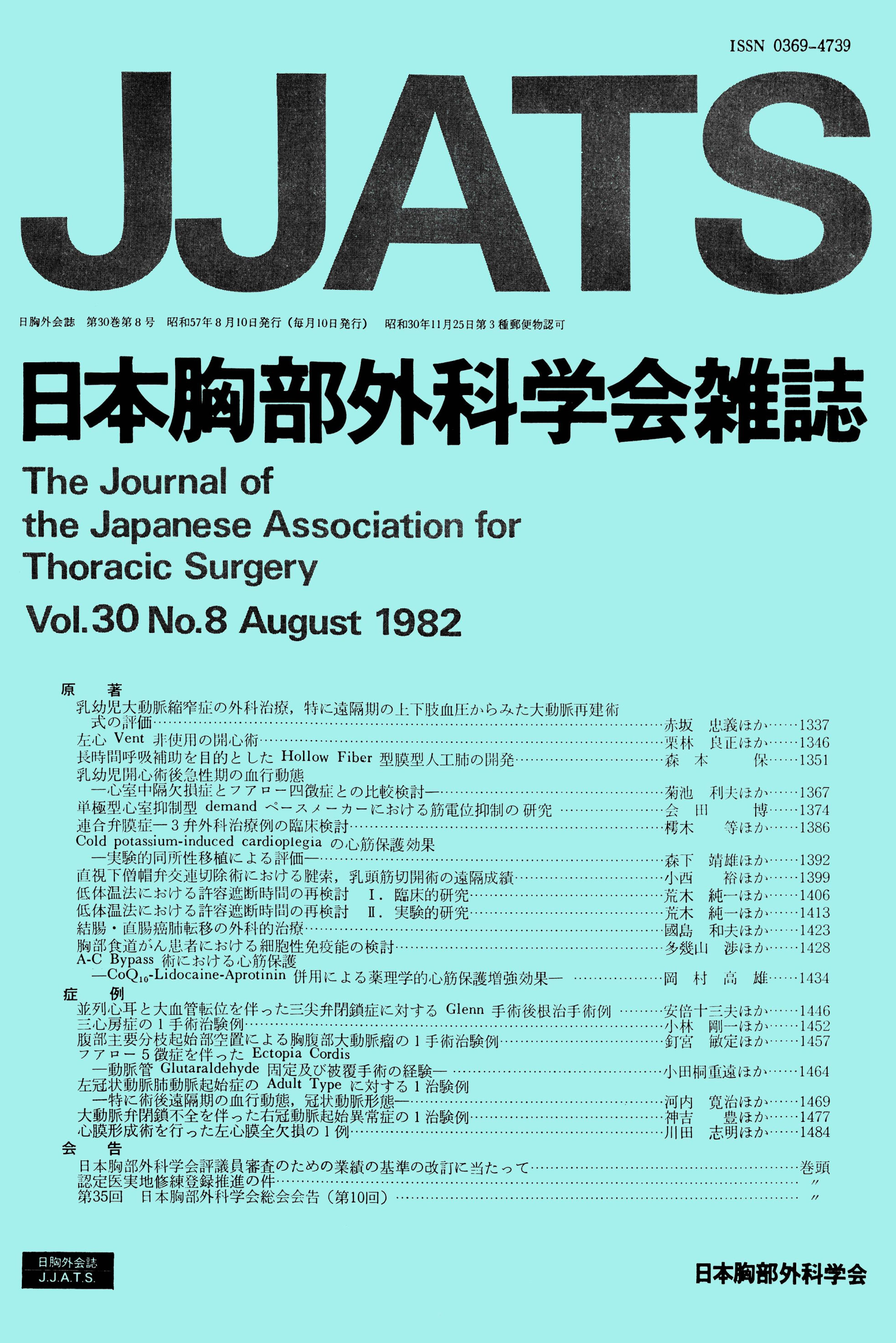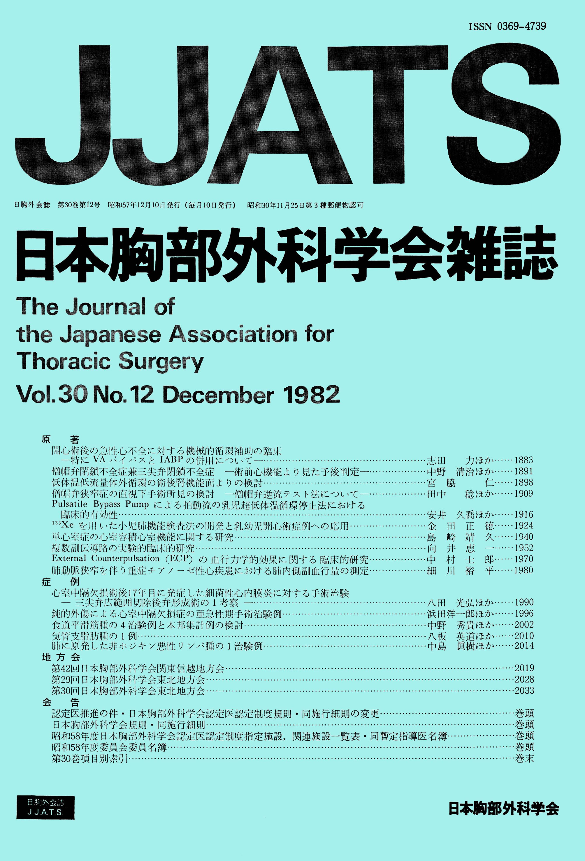 > 日本胸部外科学会雑誌 (1982)